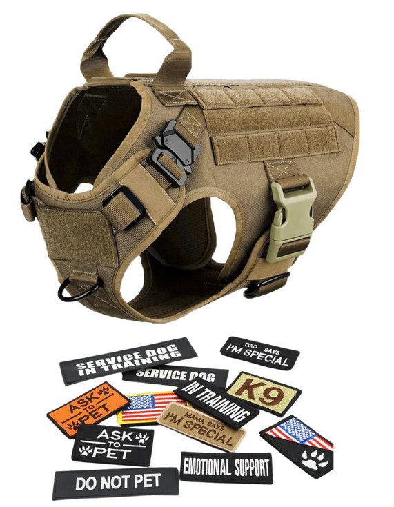 Have you considered purchasing one of the dog vests that offer various patches that velcro to the vest?