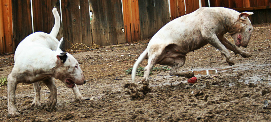 My bullies love mud! They are little piggies! Here are some pics of Ellie and Claxxton enjoying the muddy weather, little claxxton is 8 months old now!