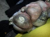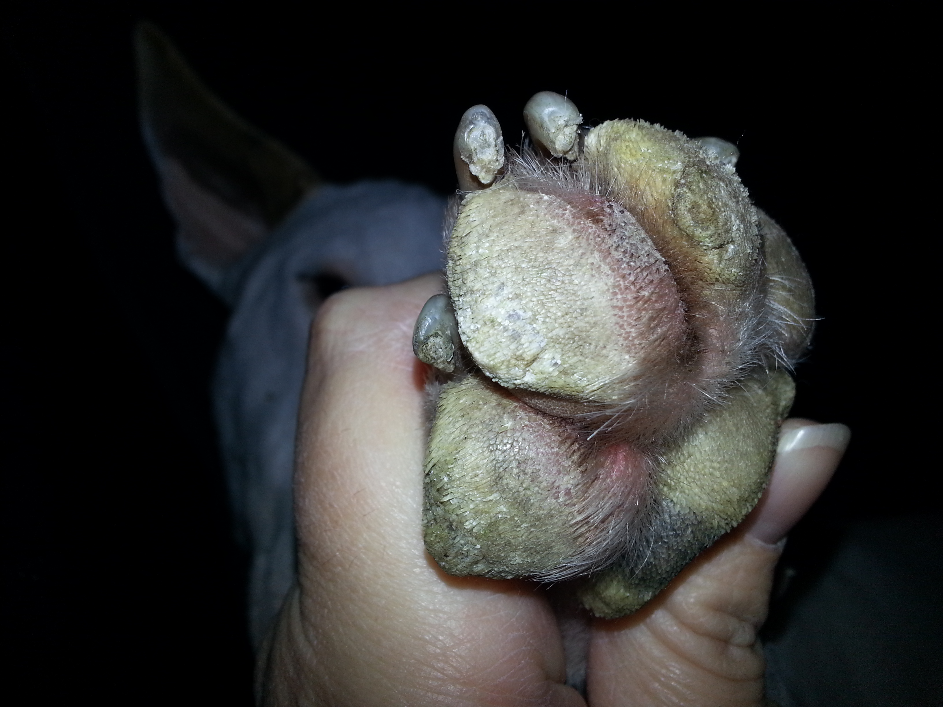 ok does anyone else have a BT with this issue? when my female was a puppy i took her to my vet for this as it affected her walking and the way her pads jit the ground when she walks. i was told to file them down periodically to keep them flush. also her pads arent soft like a normal paw pad would be its course and rough. she has 3 diffrent corns and yesterday i found one on my male:( WTF!!!! where do these come from and is their a better way to get rid of them than just filing them down? my male will never sit still and let me saw on his feet!!! i want to remove them not file them. any idead anyone???