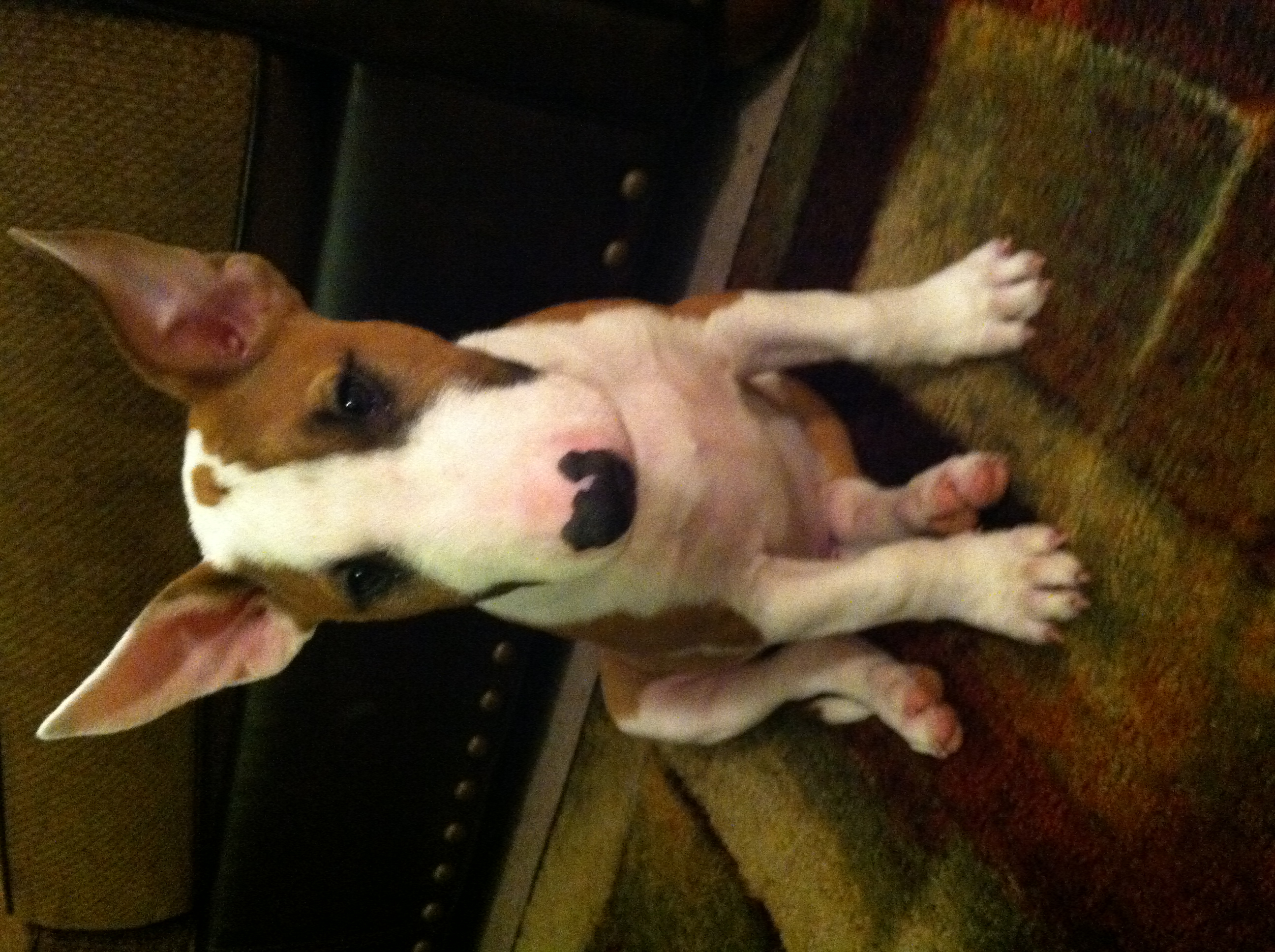 I am new to this forum. My wife and I just got our first Bull Terrier (Maximus). He is registered as Miniature Bull Terrier. We have had him 2 weeks today and he is now 14 weeks old. We got him flown in from a breeder in Texas, and I have been reading several discussions for a few days now. Therefore, I thought it was time to join!! Here are a few pics as of today! Any comments are appreciated!