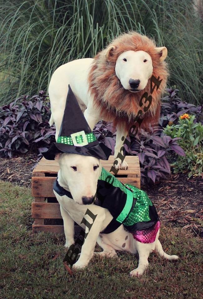 All of the pictures are so cute and funny. Bull Terriers look awesome in costumes, and humans look good in Bull Terrier costumes, too.