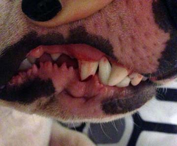 Years ago when we were forced to leave Kolohe outside all day in a kennel while we went to Utah on vacation she became very stressed and did not wish to be kenneled. She bit at the kennel with so much force she wore groves in the back of her canines and broke a tooth in the the process. She's difinetely not the type of BT that wishes to be cooped up. She did the same thing all over again about a year after the incident only this time it was at the Vets office after she was spayed. The Vet couldn't beleive she bend the kennel mesh bars with her teeth. Thank God she didn't break another tooth on that occasion. It's obvious she's very attached to us and doesn't enjoy being confined.