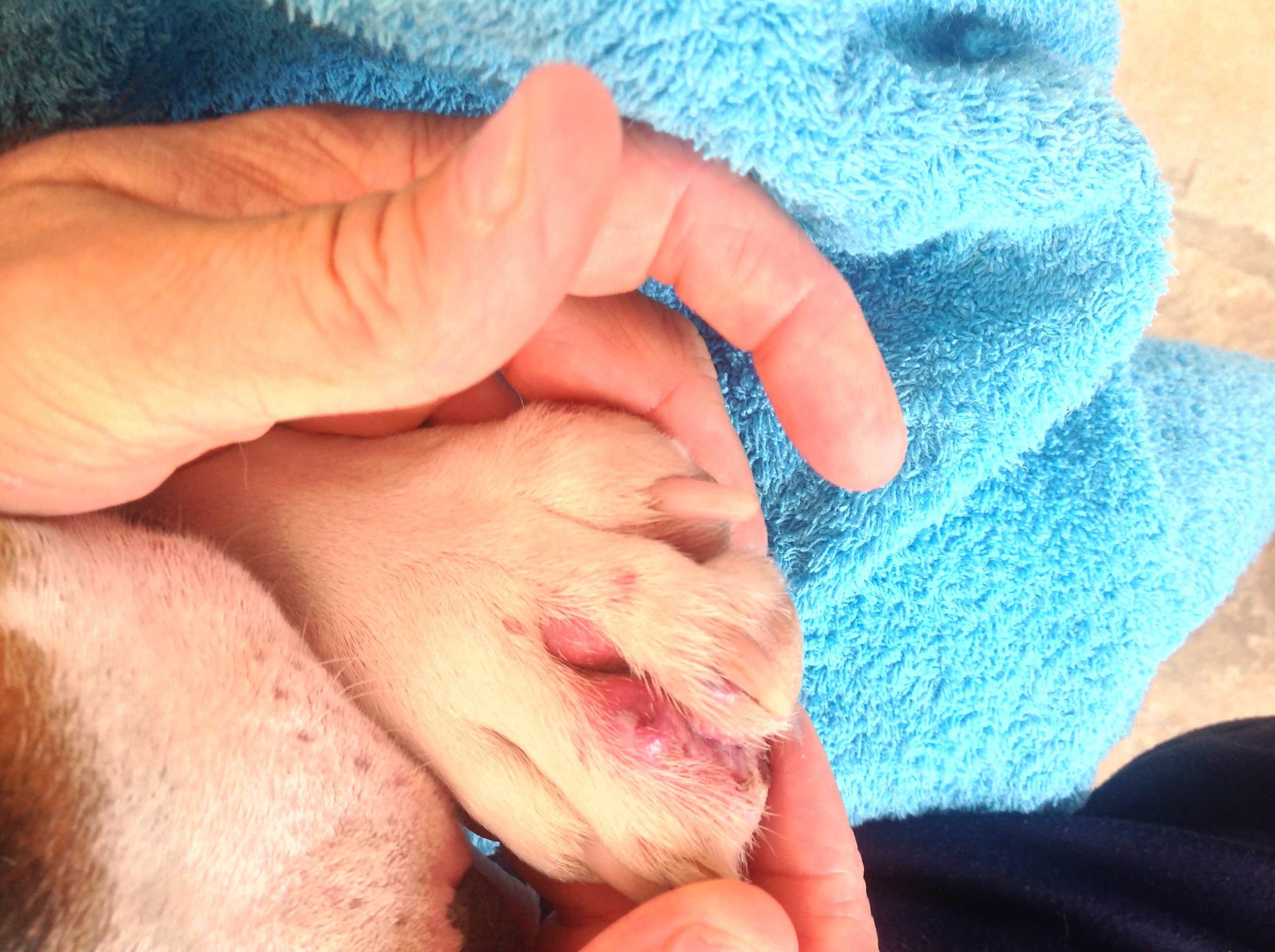 Hi, I am after some help and advice Archie is 18 months old and for the past eight months has suffered from very sore feet, after a visit to the vets he has had several courses of antibiotics and an unnecessary op it was decided he had a deep bacterial infection so more antibiotics and steroids once they had finished his feet started to swell again so after hours on the net I decided he has interdigital cysts or furnacles. I have tried all the treatments that have been recommended various foot soaks different creams, grain free diet and at the moment he is on a raw diet with added pure salmon oil nothing seems to have helped as his feet are at there worst so reluctantly I have had to go back to the vets who has said he will need to be on a long course of antibiotics and he may always need to be on them, I am not happy with this but don't know what else to do. Archie has swellings between his toes that are inflammed and weep and very sore. Apart from his feet he is n good condition, Can anyone please help.