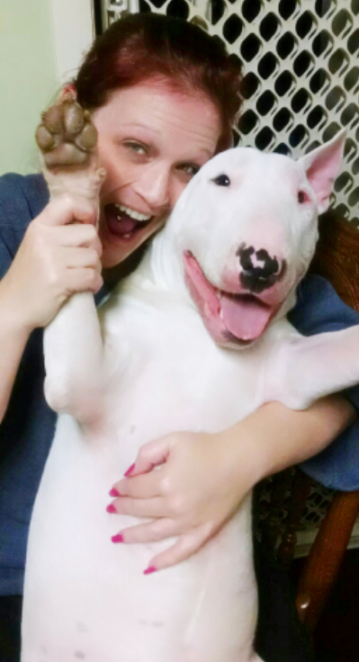 Smh I feel ya bully is always wherever I am and he def is rude when ur sleeping he flops wherever usually hits a hip bone or something...ouchhhhh....pulls my ponytail when laying on my head...lol and I usually wake up to him on me sleepng crazier then ever I would think that lil guy would have a stiff neck....lol or my fave I hear his lil snore real close open my eyes. ...bull terrier nose pressed to mine...hahaa he is s trip....glad my hubby is strong he can still snatch him up when needed.....my hubby also carries him around like a littke kid he says bully u wanna ride....bully stands right up my hubby picks him up..billy puts his paws around his daddys neck and then licks his face off...lol sooo cute but man when I do have to pick him up ewwww lawd .......it is def not easy...thanken jesus he will be a year old...hahaaa he is calming down alot and he listens prettty good but we def wear him out ....gotta..hahaaa