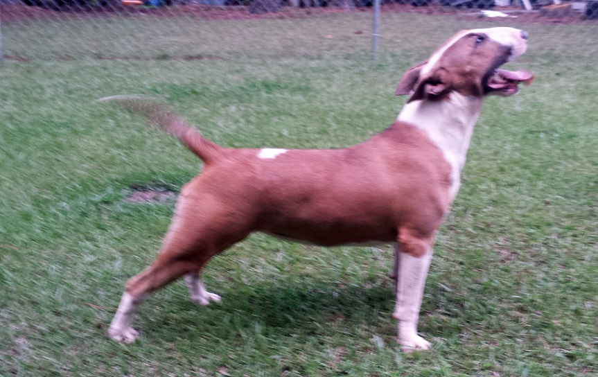 Scarlet is a puppy I retained from a private breeder in Raleigh for Stud Service from Nitro. She's a great looking Bullie with a fantastic personality.