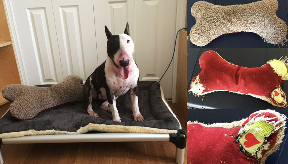 I checked out the Tuffy Toy blog post of yours. I will check those out and pick one up. He loves soft toys, too. I've tried several brands, including the Kong toys similar to that and he goes straight for the black piping. Once he gets those teeth in that, it's like unzipping a zipper. Stuffing is EVERYWHERE! Thank goodness he doesn't eat the stuffing, he just spits it out and resumes total destruction. I'll have to check, but I bought a 3-pack of toys that looks like those toys that didn't hold up well. If it's a different brand, I'll order him the pig. If it is the brand, I'll probably just let him finish destroying whatever he hasn't finished off yet.