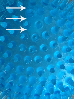 I frequently examine all of her toys. If I find loose seams or other signs of destruction, I immediately take the toy away. Today (day 13) I found the first bite marks on her new Gnawsome. NOW it’s getting interesting!