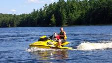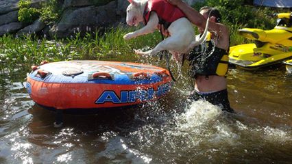 I just thought I'd share a couple photos with you of one of our last puppies that went to live in Canada with his owners. his name is Calvin and he is currently 9 months old. I guess he thinks he is a water dog. Anyhow, they are from Mississauga, Ontario.