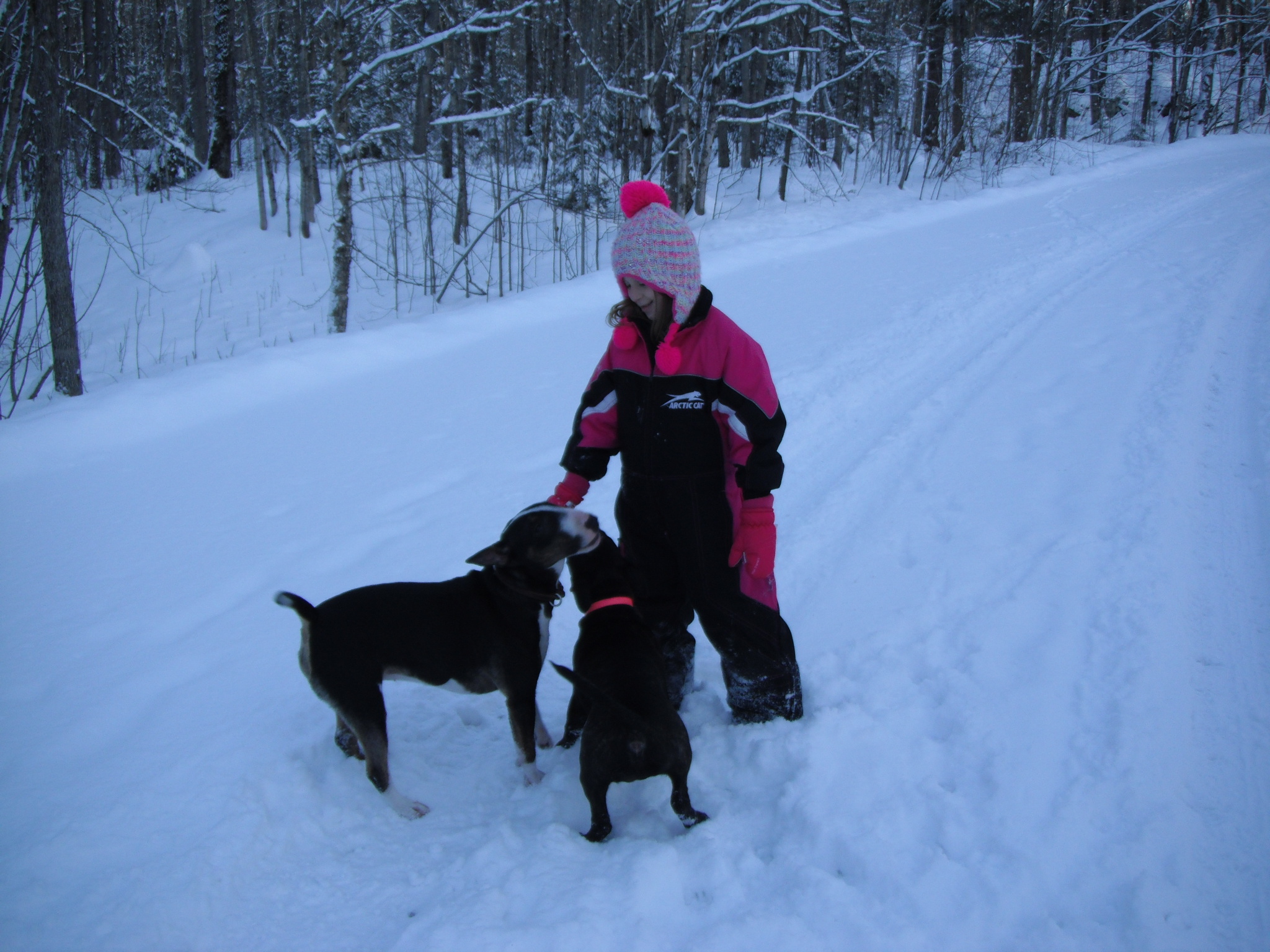 Happy New Year eveyone! 4 1/2 mos old Tea' got to meet and spend time over the holidays with her first "kid"!! Our granddaughter "Hailey" spent the last week with us. She is 7. Wasn't sure how it was going to go with 2 bullies, but it was great. Hannah just adores Hailey and never leaves her side. I was a bit worried she might become jealous with Tea', but all was good. Hannah is funny though, cause she herds people and animals away from something she wants to be around. She will come and stand right in between it and you. Does anybody else's bullies do that?? Then she just moves them along, pushing her way through. So funny.