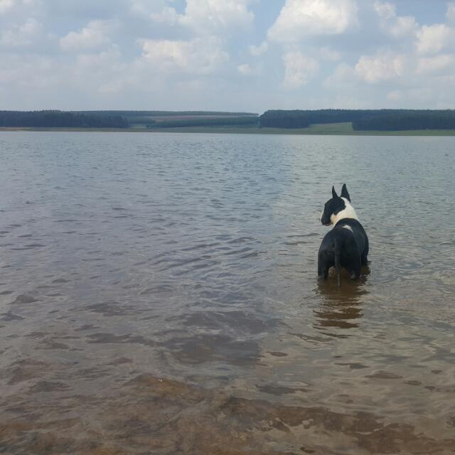 We go on regular fishing trips and of course he goes along! Sometimes I think the fish that are caught are the higlight of the day, nevermind the swimming