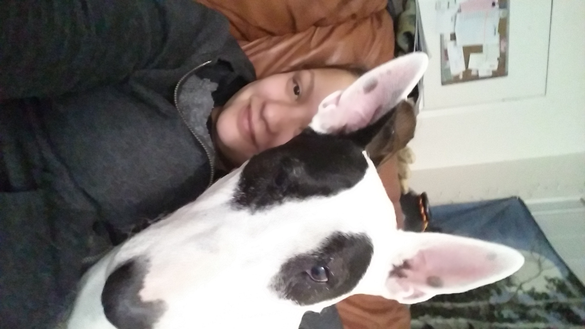 I used to work with this girl. One day we were talking about Bull Terriers and she goes, Oh! I have one! I told her that is amazing! She goes, oh no we do not like her and she is dumb. I straight up told her if she did not want her, I would be more then happy to take her. 2 weeks later she was mine! She told us that she was about 7 to 10 years old, and that her previous owner just left her with them and that was 3 years ago.  I took her to the vet to get shots and her nails trimmed. Not only were her nails extremely long, her teeth were completely black.  The vet told us that we can do the surgery and you can make payments and that is what we did. I finally came up with the down payment and  I am coming to you guys for help! Any donations would be greatly appreciated! Or if you have any ideas on how to get donations that would be fantastic!  Thank you for taking the time to read this, and have a blessed day