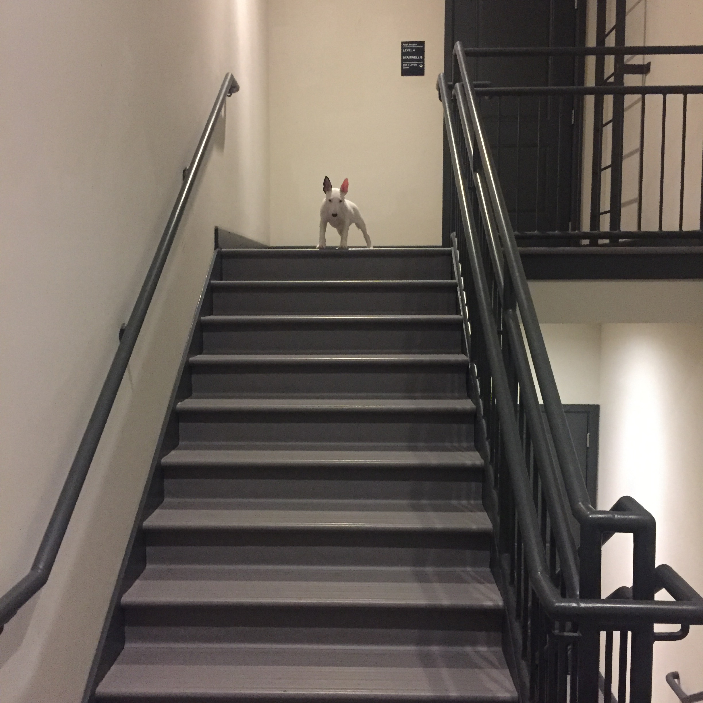 Two days ago I was tired of picking my princess up everytime we went up stairs so I told her you know what I'm leaving you and walked up the stairs, opened the door and she came running up the stairs so now we are working and walking down