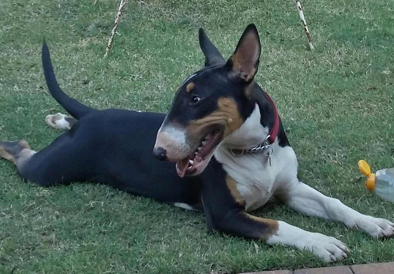 This is Kahli my 5 month old EBT that I got at 4 months from a Bull terrier rescue .Her previous owner gave her away as they had a new baby and she was to boisterous.We love her with all our hearts we just have 2 issues that I was trying to find answers to when I came across your website. She tends to ignore our commands if there are any other dogs or people around and we cannot stop her nibbling our hands when she is near us .
