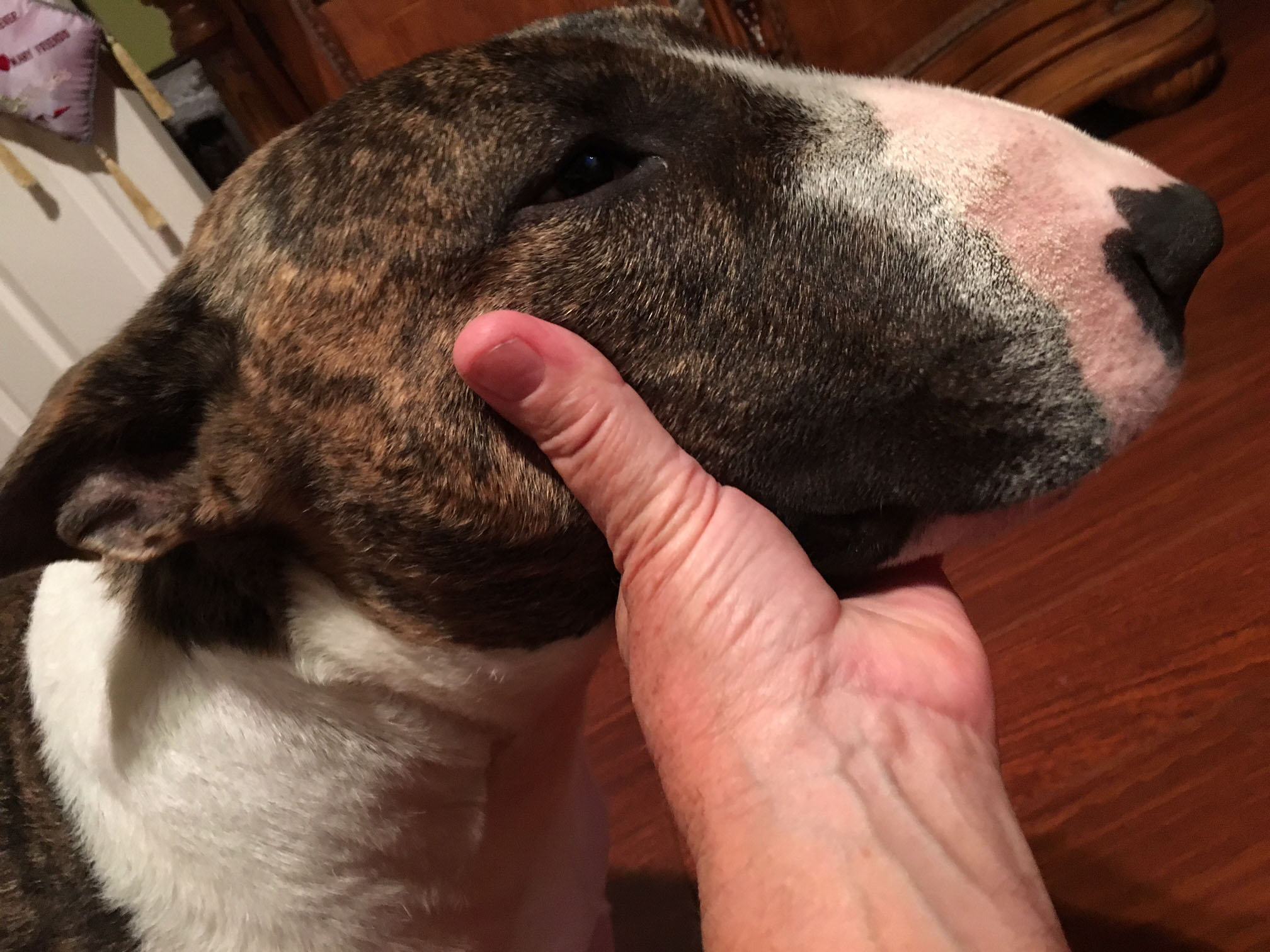 Rocky absolutely loves when we have visitors come over to the house and just has to stay by their side and beg for attention. He's never hyper and crazy but he sure knows how to receive the affection he adores.