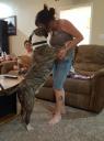 Here's a photo with a customer who came over and Rocky stayed by her side hoping to get as much attention as possible.
