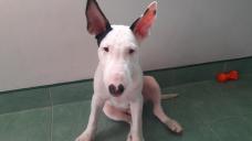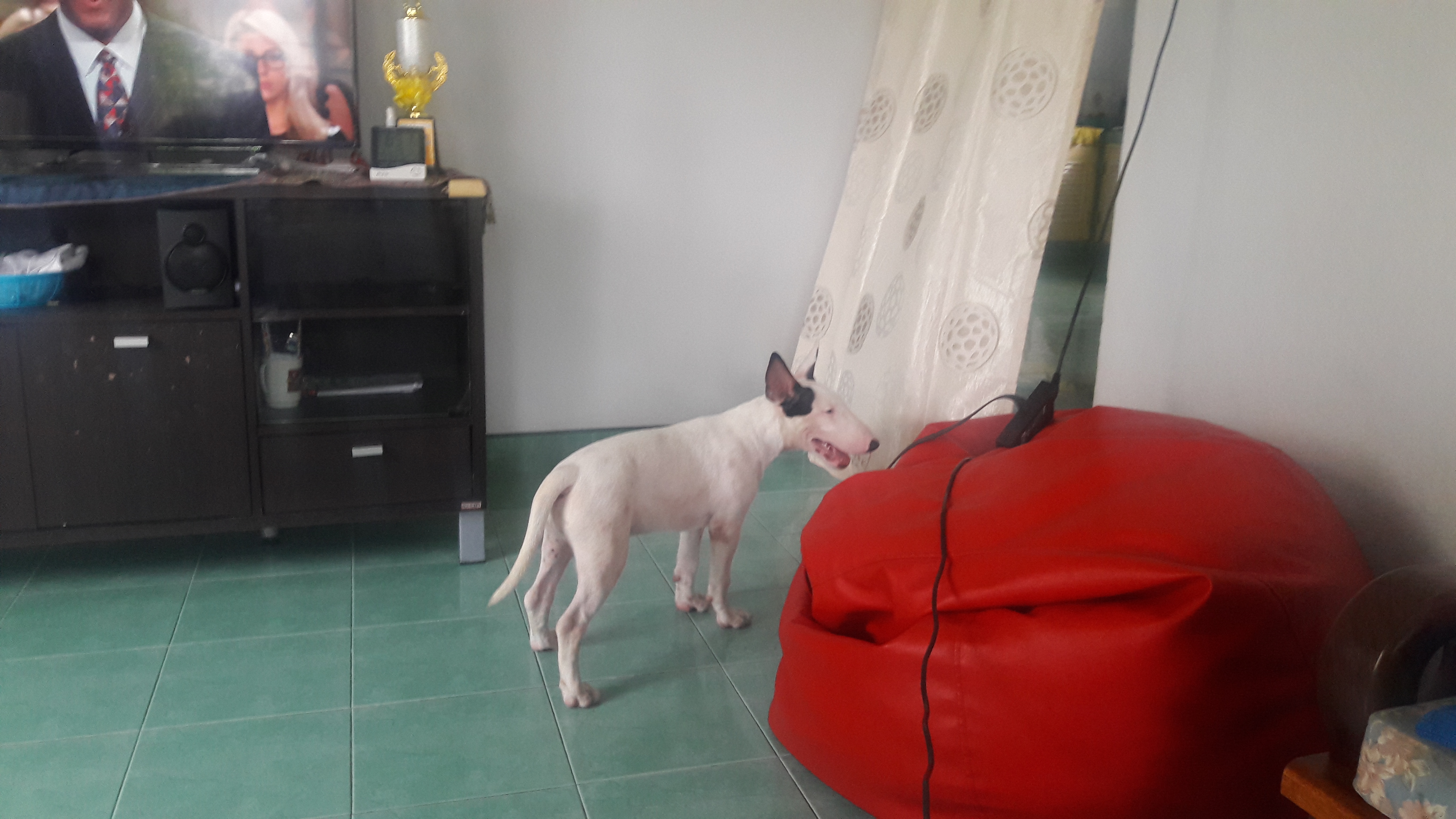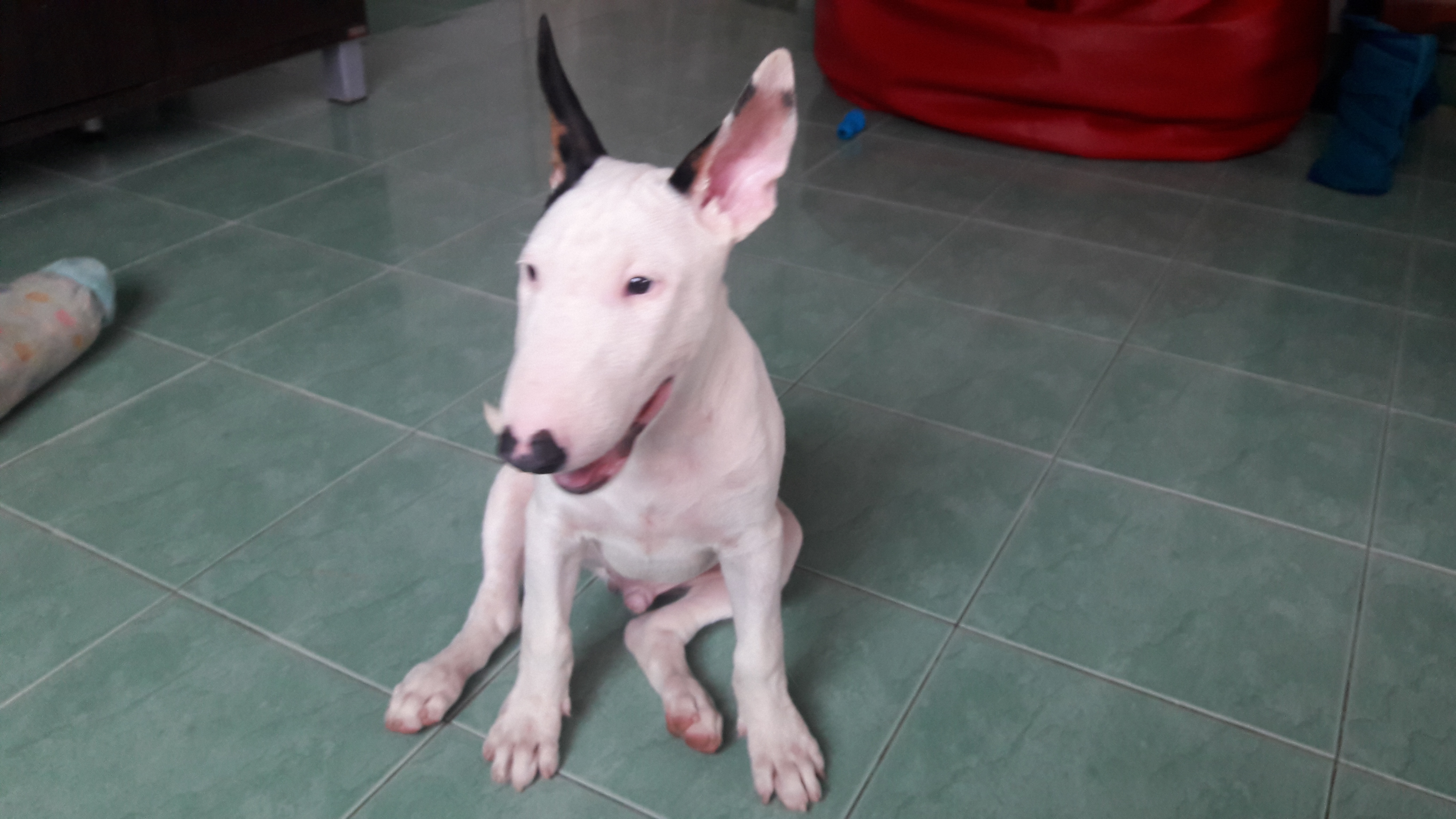Based on the current structure and overall look of your puppy he may not be taking after the particular Bull Terriers you mention that are depicted in his pedigree. Have you researched his pedigree through http://ingrus.net/bull/en/ ?