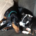 This my new boy Hogan. He's 11.5 weeks old 16 lbs. He loves chewing on toys and pestering his sister Nala. So far no concerns or problems just working on potty training and appropriate play.