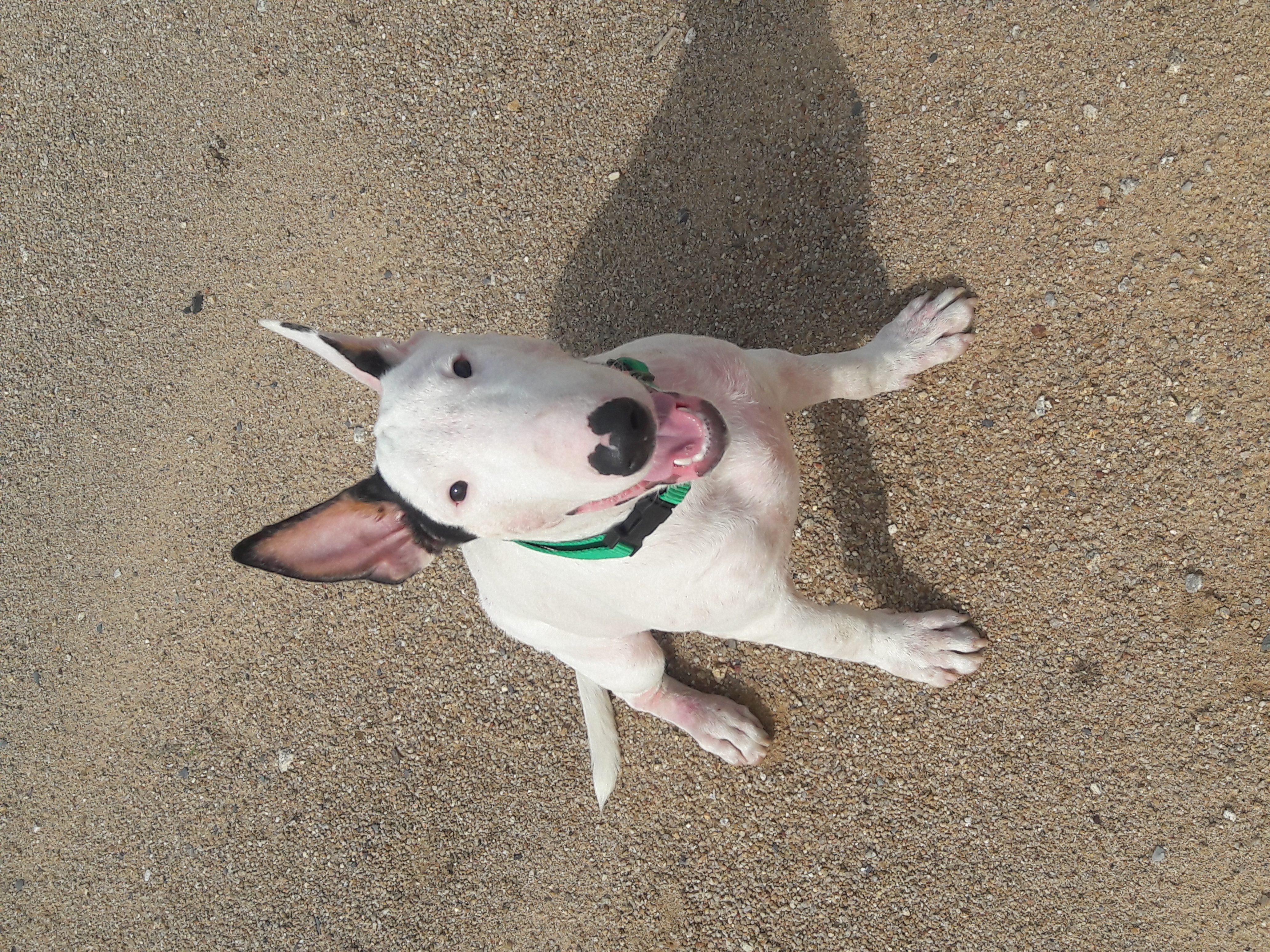 He's looking wonderful and just right for a Bull Terrier puppy!