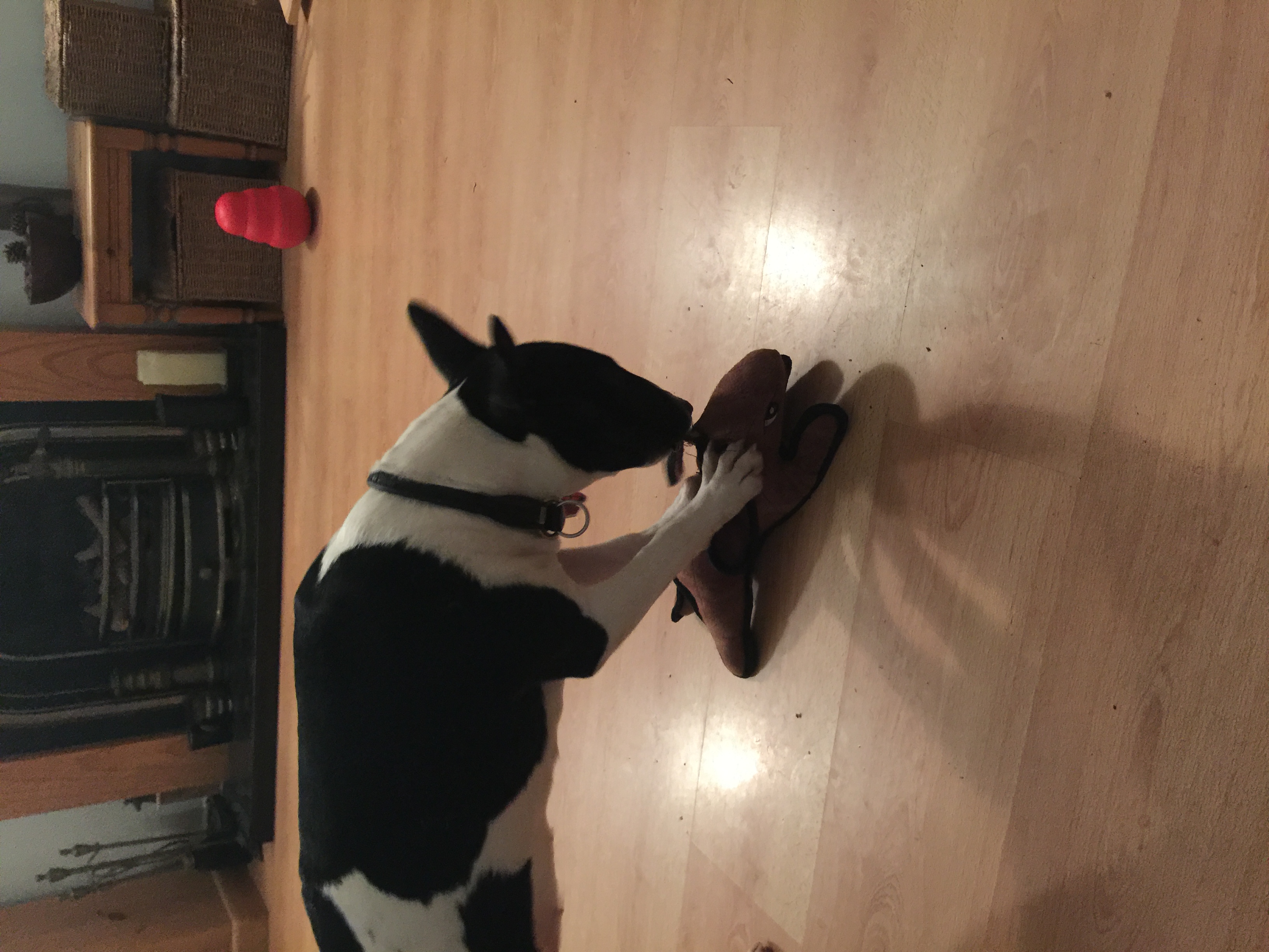 I thought that typically Bull Terriers would grow 'up' roughly for about a year then 'out' over the second . I certainly don't have problems with Harley being a dainty Bull Terrier but just wondered if those people were talking rot and Harley is likely to swop her svelt ladylike frame to one more reflective of her inner thug?