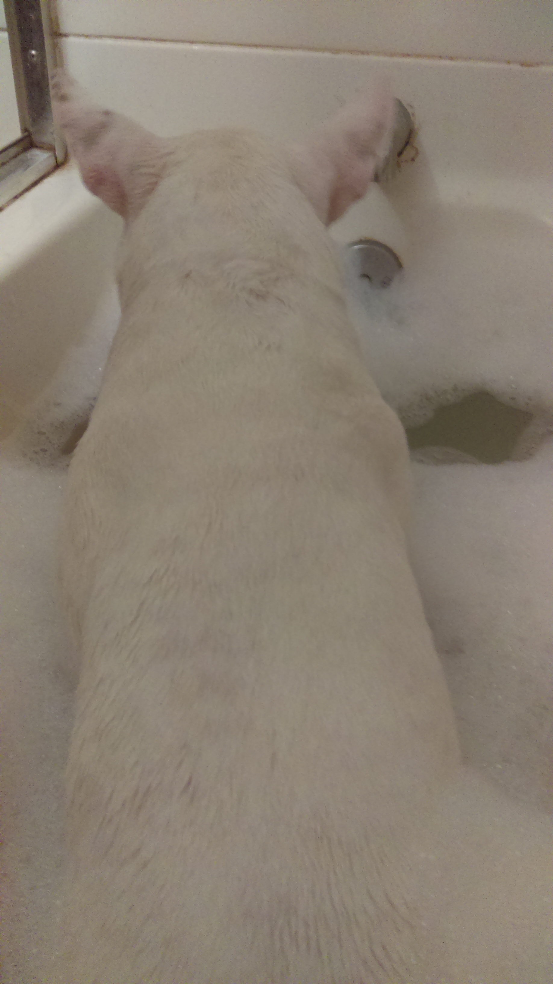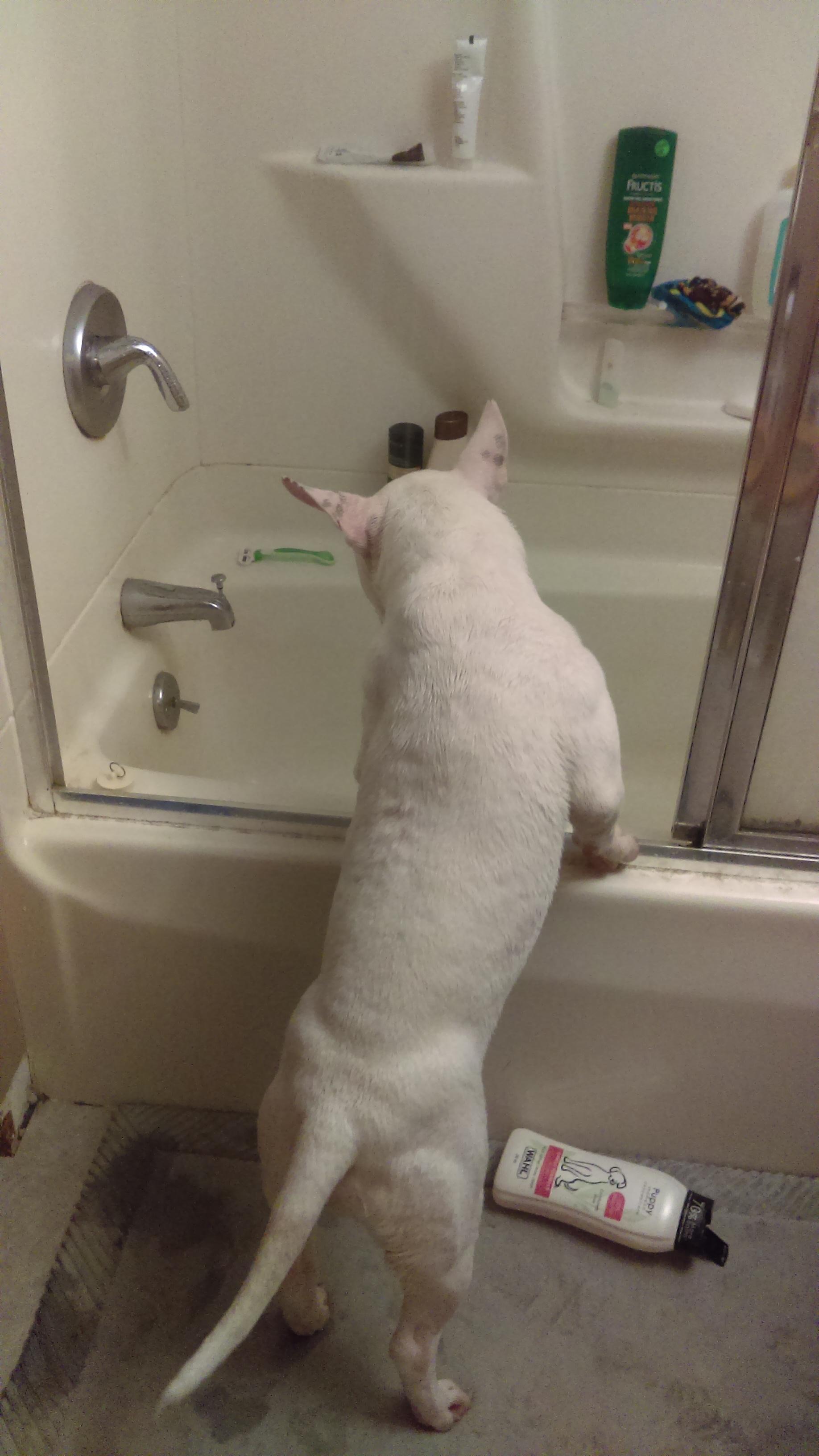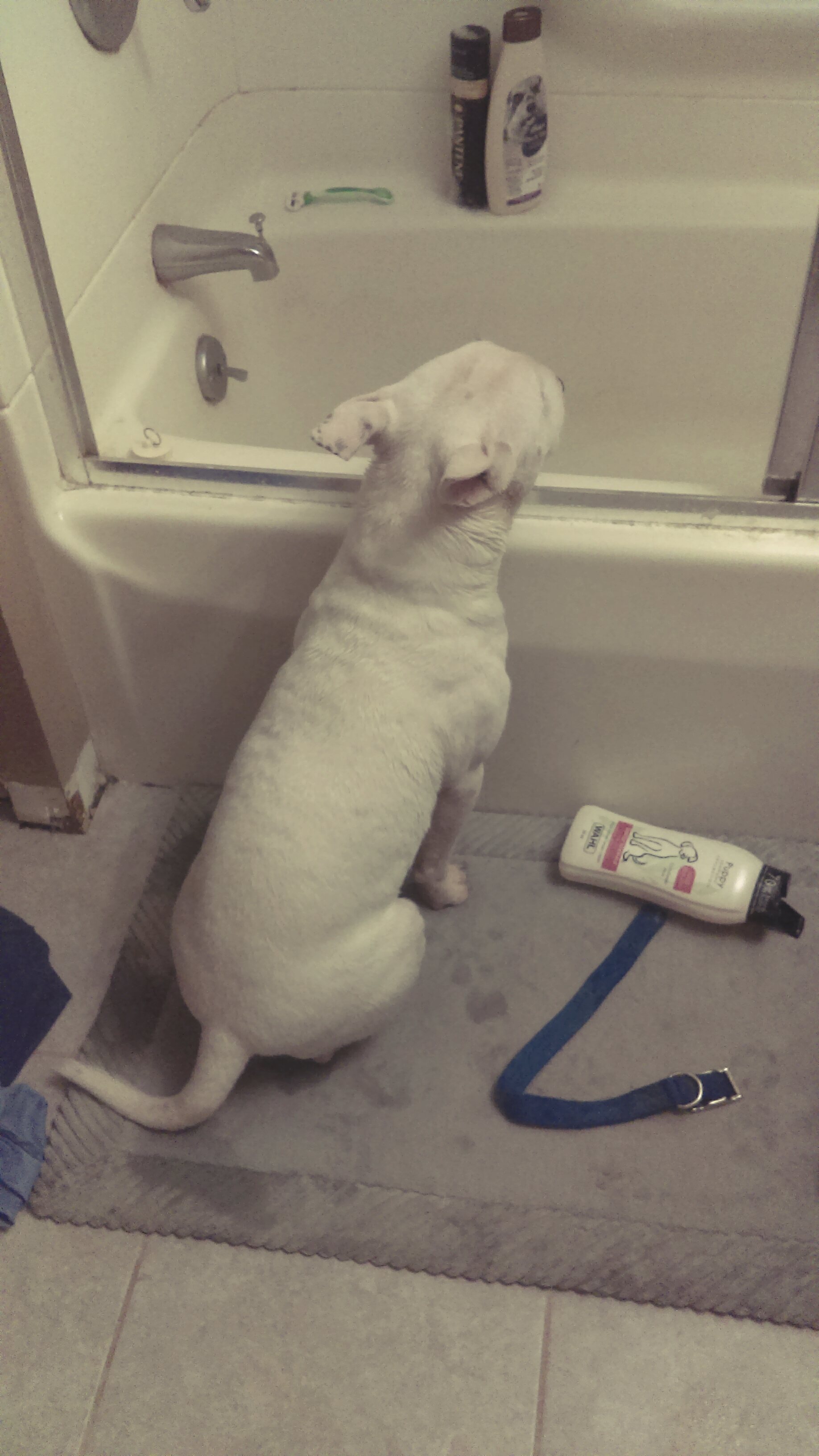 Does anyone else's bull terriers LOVE baths? Chico can't get enough of them! He waits at the bath before and after and I have to stop him from jumping back into the bath when it's over. I can't wait to take him to the lake next year to see if he likes that to.