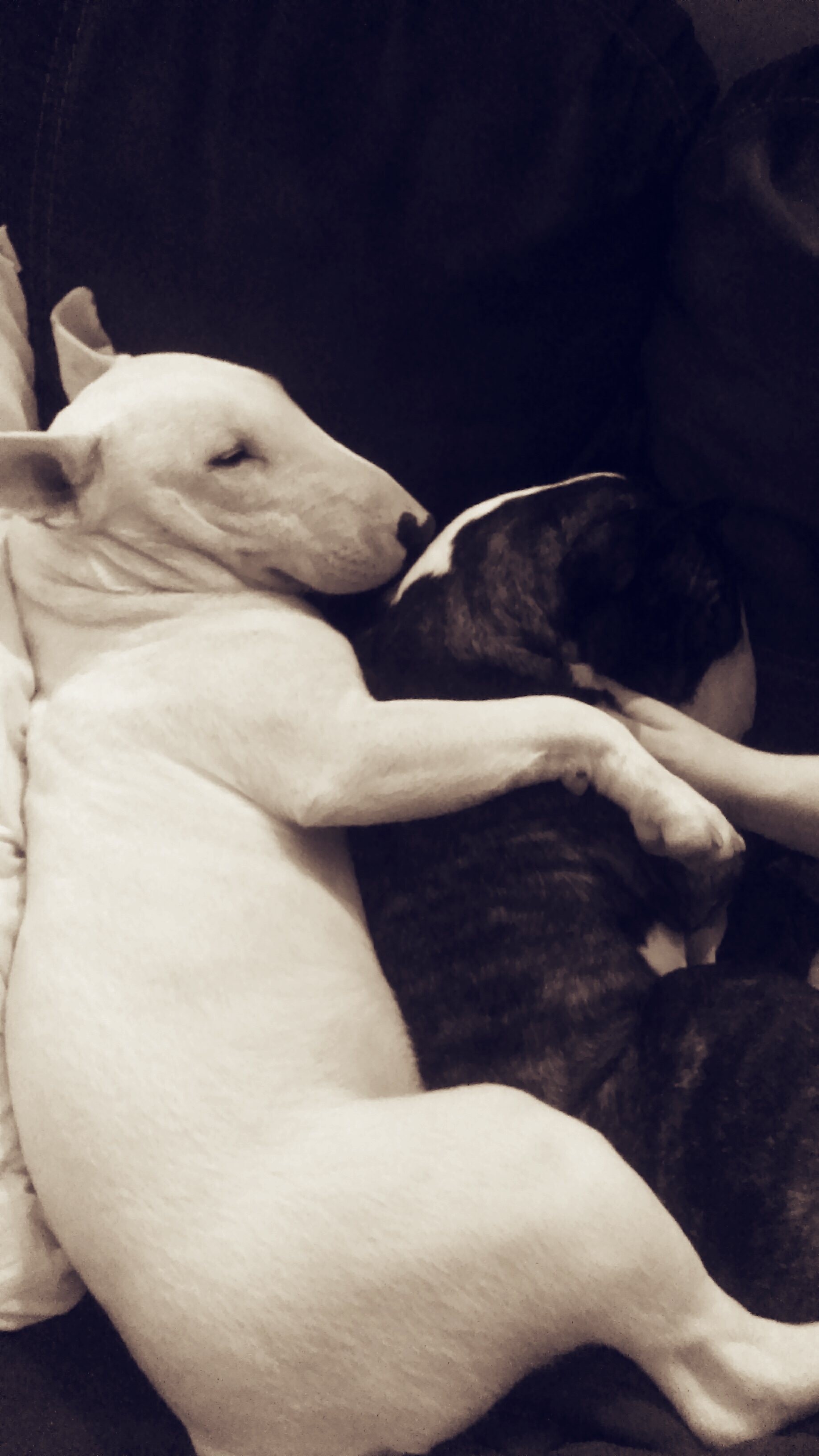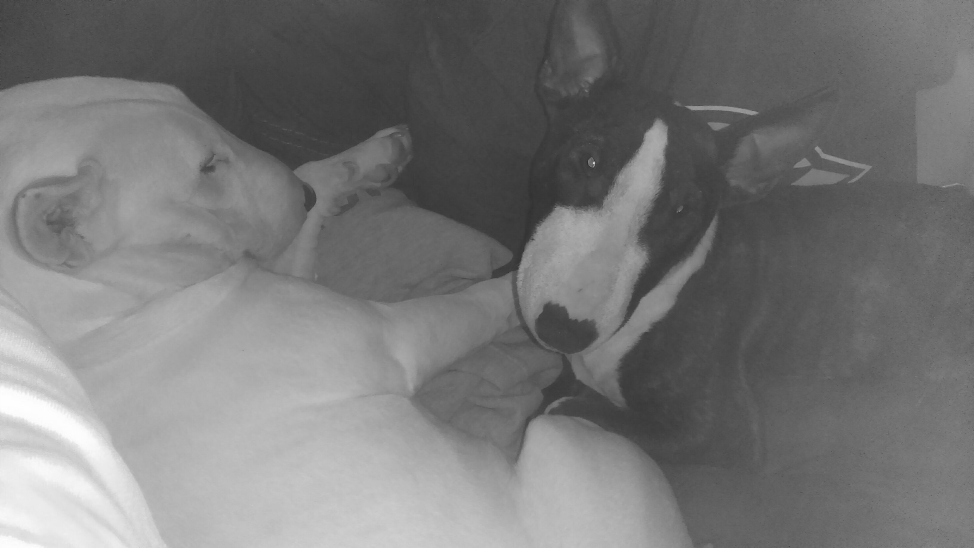 Bull terrier cuddles