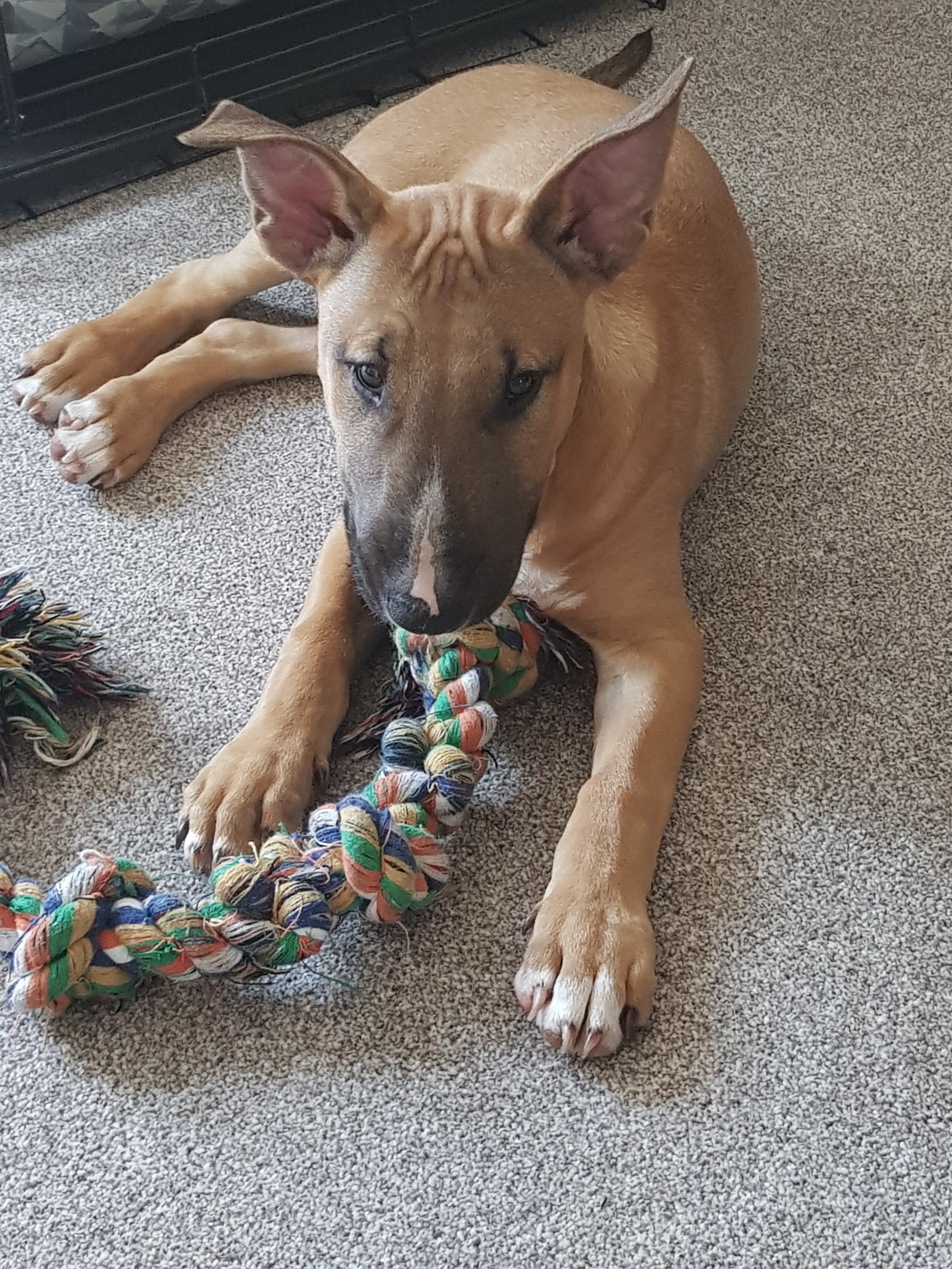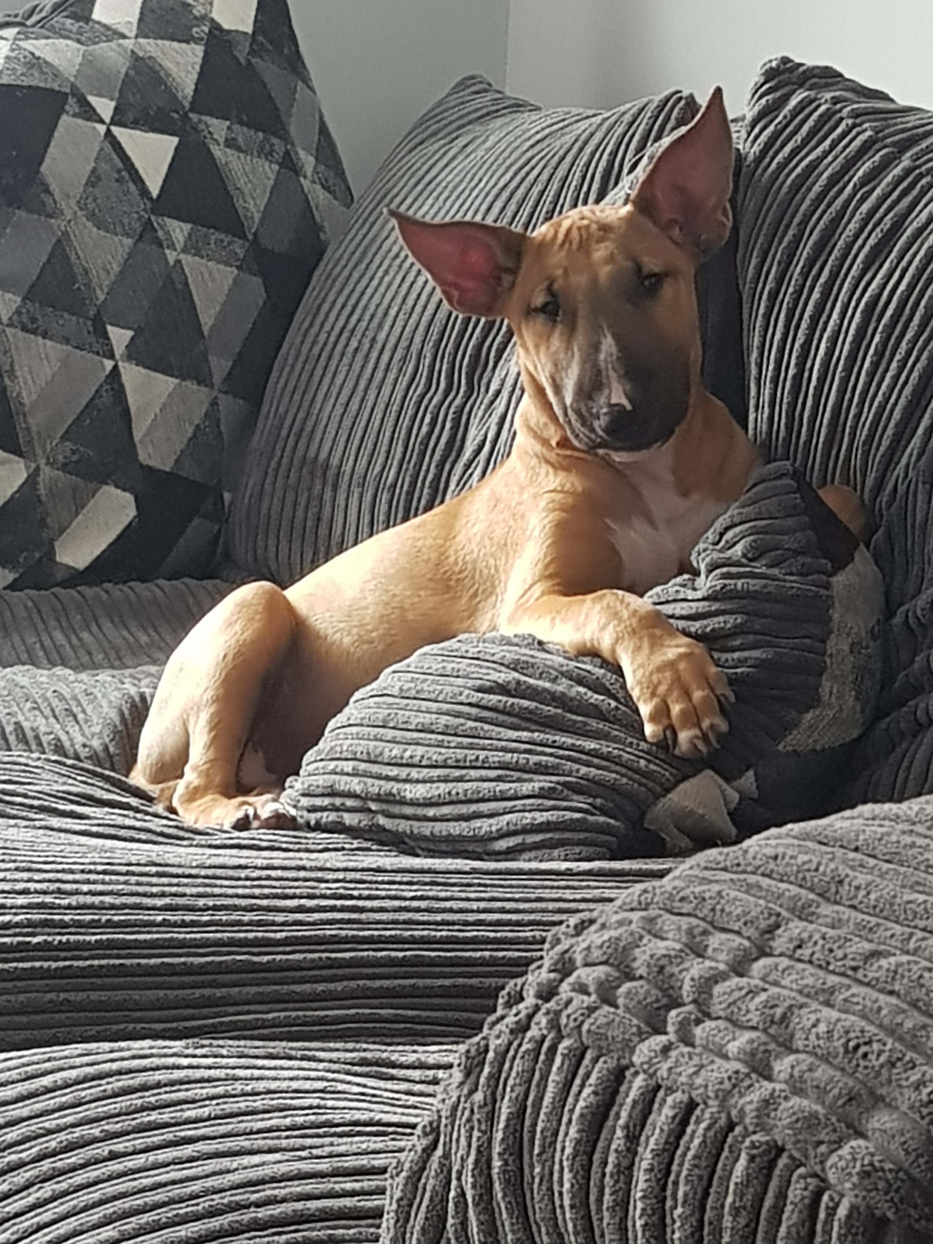 • Had a female growing up as a kid and that is where the love of bull terriers has come from. She was an awesome dog and there was only one breed i was ever going to get when the time came to get my own dog.