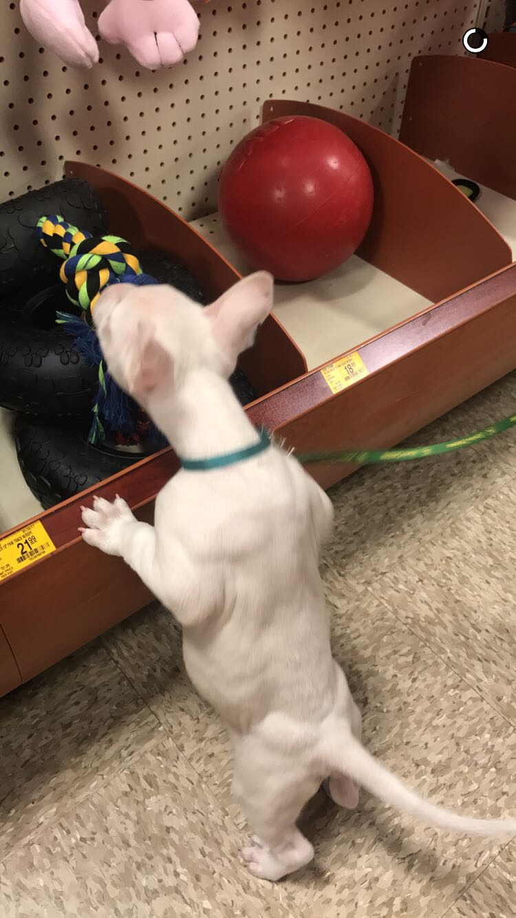 We just brought home our new 2017 model miniature bull terrier pup a few days ago. Her name is Minnie and she is almost 8 weeks old. We took her for her first vet visit and she weighs a whole 4.8 pounds! The vet seemed to think she was not underweight for her age but I can't help but wonder. This is my first experience with this breed and I am wondering what your pups weighed in at this age?