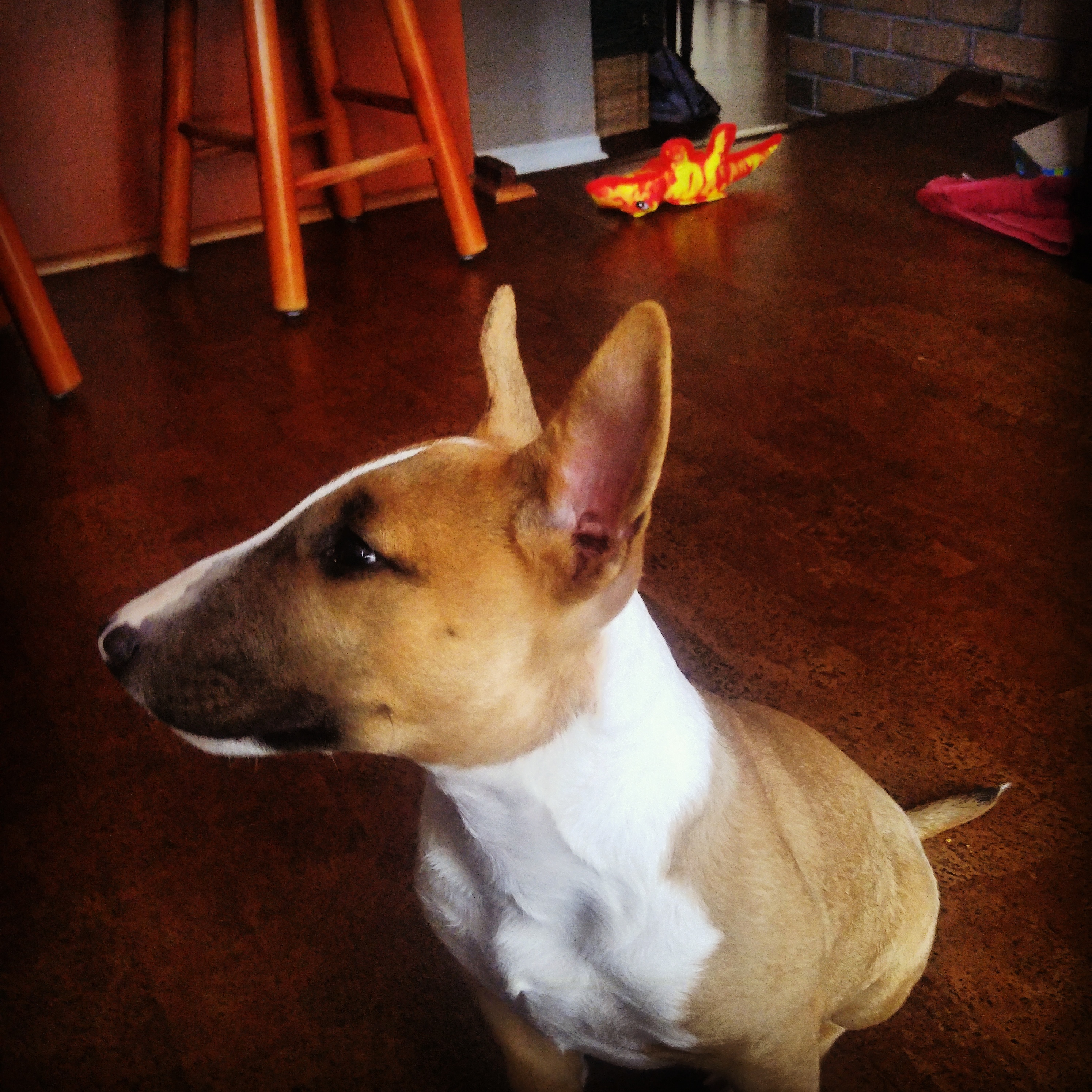She's a beauty! I love all of those red and fawn color variations in Bull Terriers!