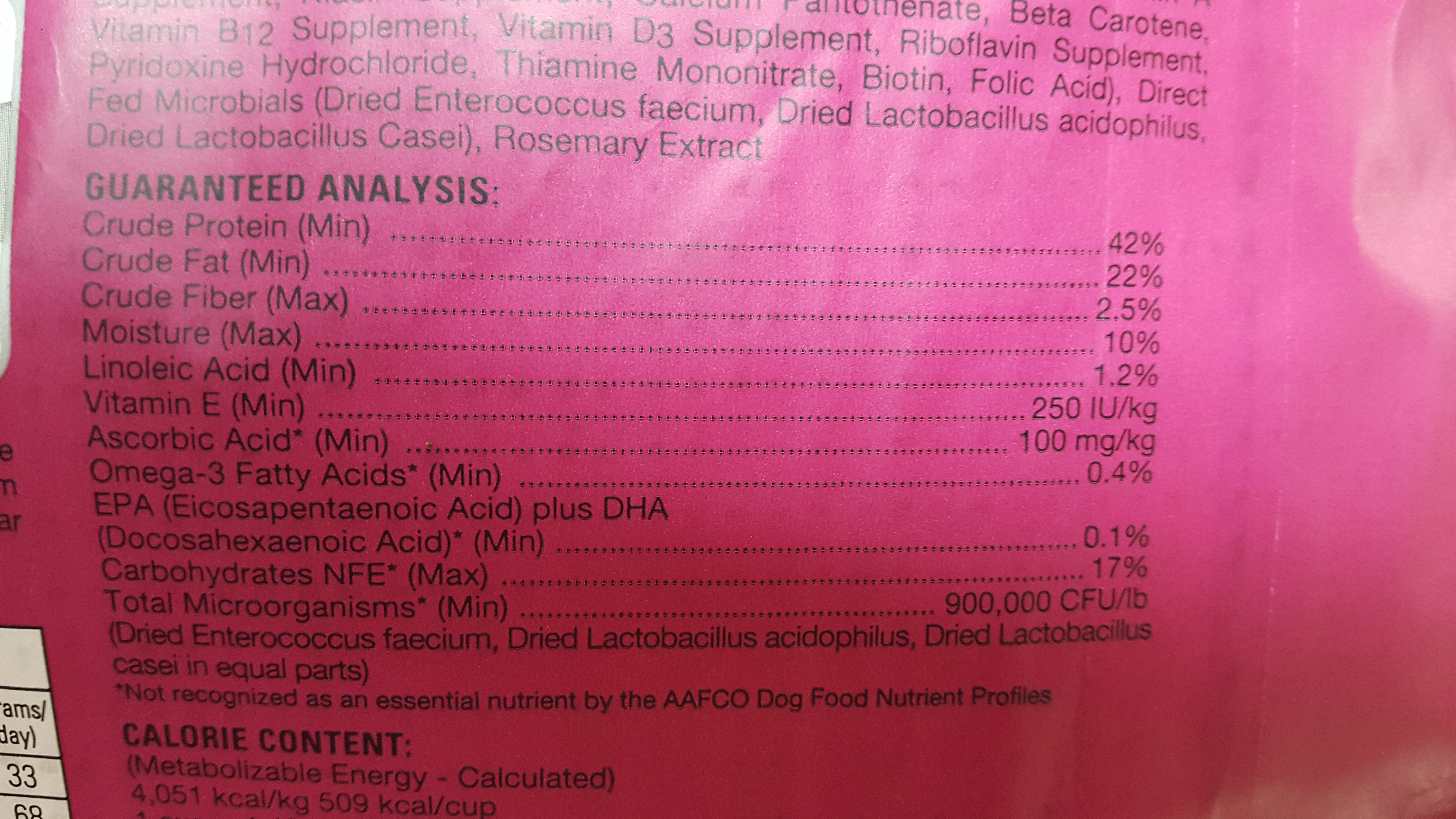 I've attached pics of the bag, ingredients list, and percentage breakdowns of nutrients so you guys can see and come to your own conclusions, but as far as I'm concerned this is a great kibble that already includes menhaden oil, pumpkin, cottage cheese, and eggs.