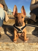 He's just a baby, getting the hang of walking on a lead takes a while for this breed.
