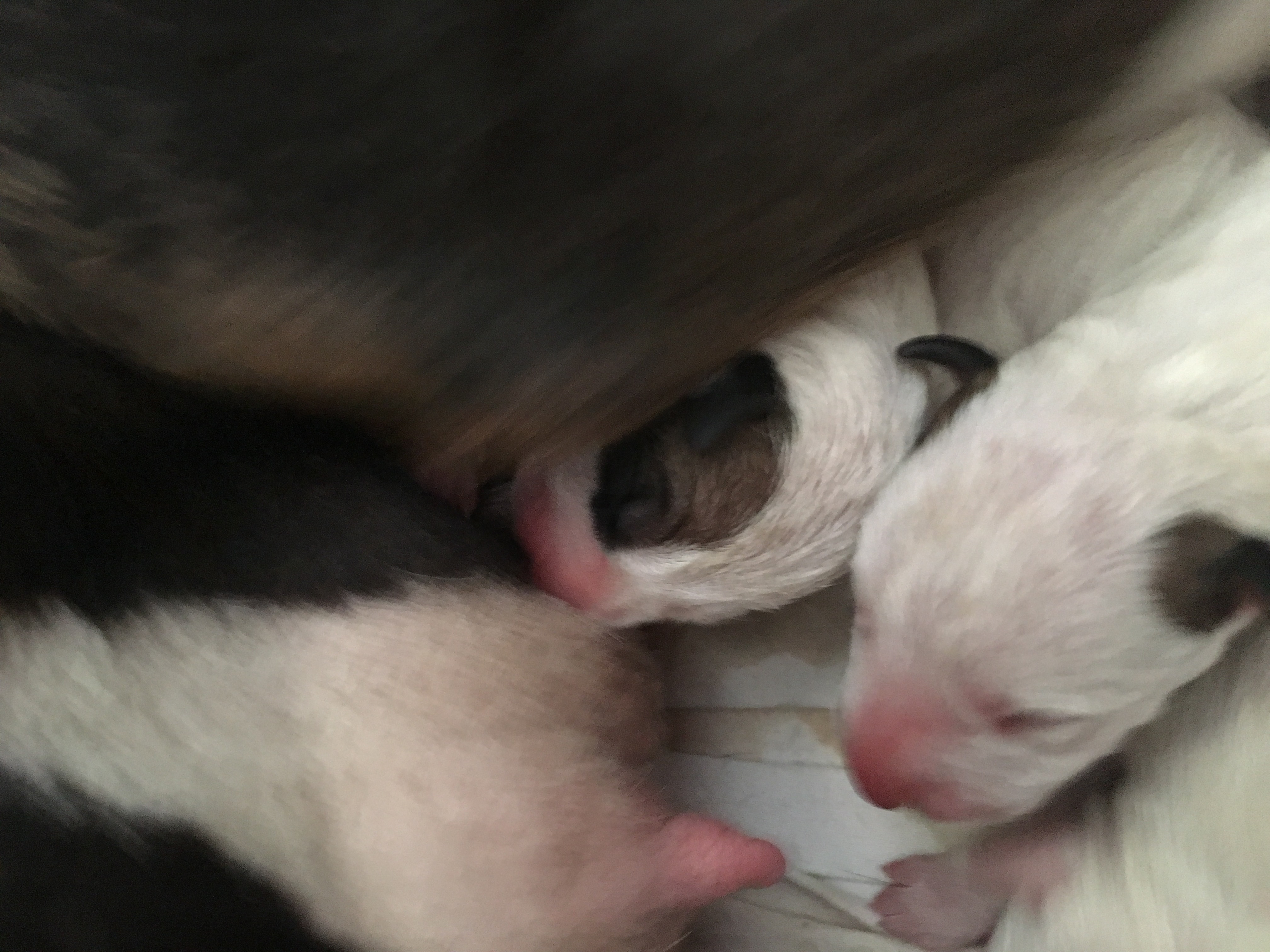 Nancy is cleaning her babies beautifully but when they have woken from a nap and they start squeaking she seems to get very stressed and starts nudging and rolling them all over the whelping pen quite roughly. At one point I thought she was going to attack them? But I think I have read too many horror stories and have worried myself stupid. (I am a terrible worrier).