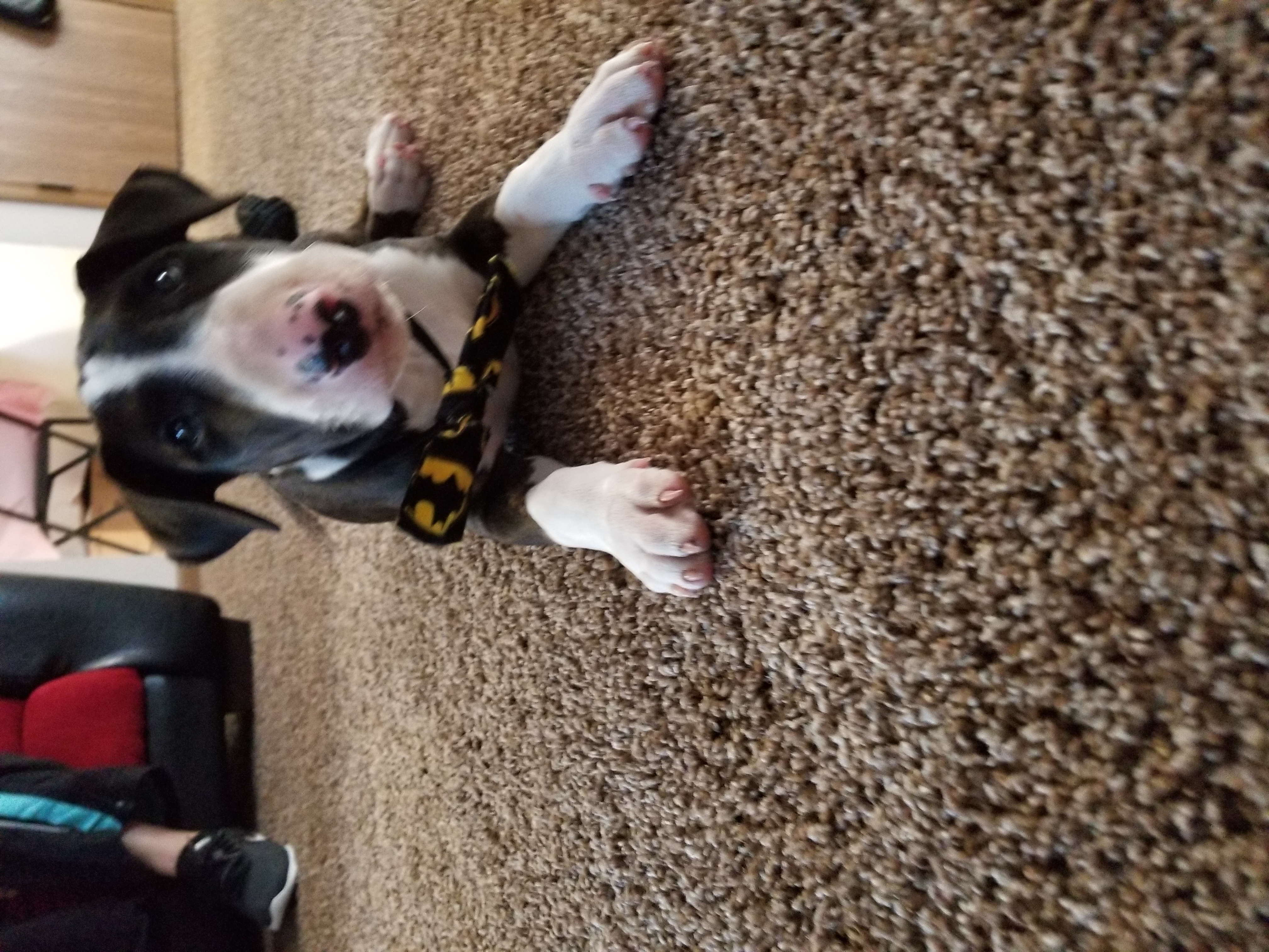 I've been waiting for this day for 20 years. Yesterday we brought home our first bull terrier. I've wanted one since I first saw one at car show when I was 8. I partnered up with a breeder about a year ago planning on a very specific breeding pair. I come from Danes and Mastiffs and I am very picky when it comes breeding pairs, especially for breeds that are susceptible to health issues. We were finally able to find a perfect match for a female I picked out. This was just a private breeding and fortunately we got lucky the temperment, colors and look we were going for came out just right.