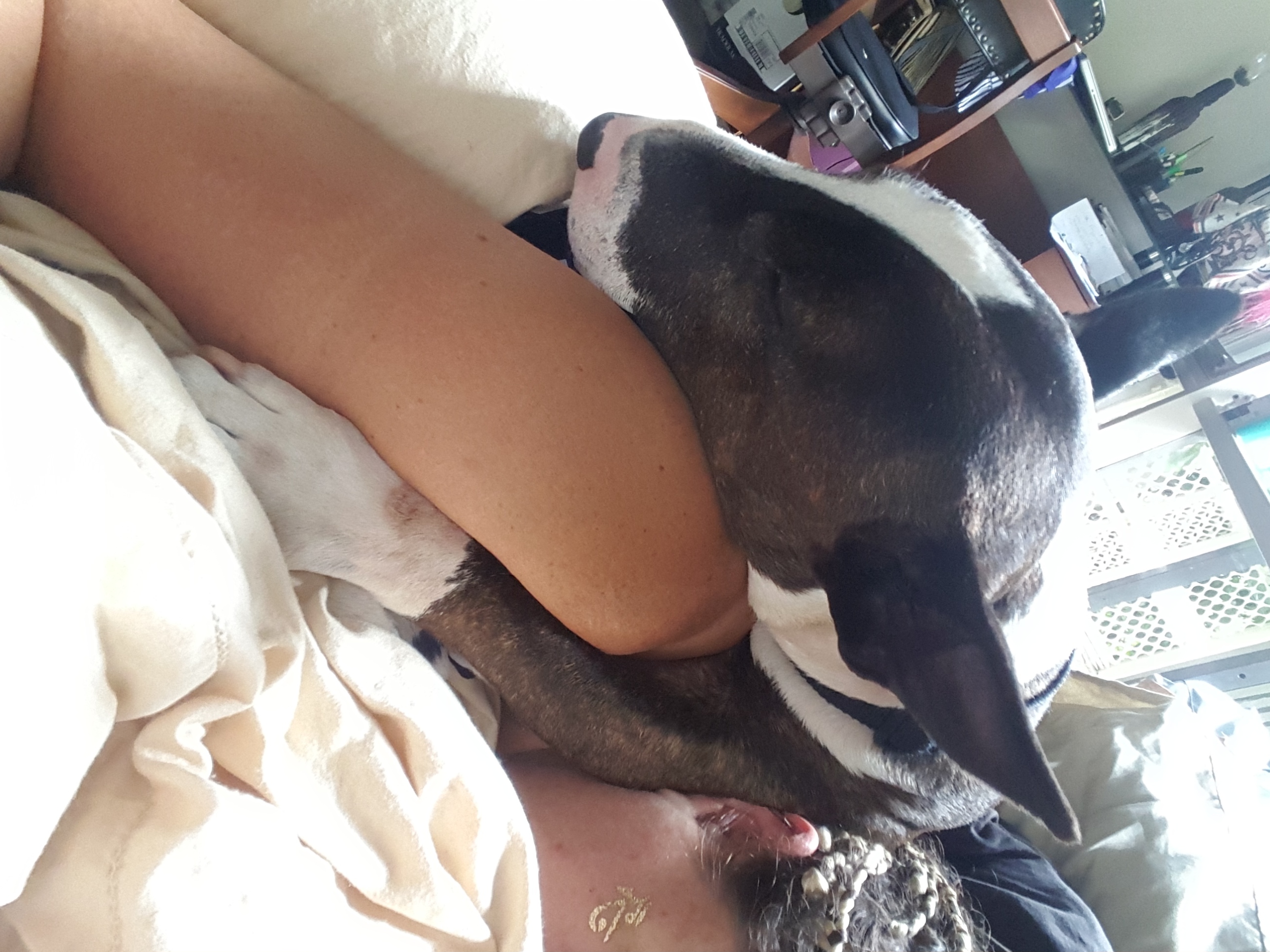 It has been quite a journey with My Best friend. I have learned a lot abut myself as well as Bull terriers. Mine is super male and a bit dominant. very sweet though. He has had night terrors since he was two. its honestly quite disturbing at times. He has flipped in the middle of a dream waking up wide eyes not understanding what had just happened to him. He has come at me a few times also. once while sleeping on me. I was sleeping also. woke up in full attack mode. whew. he was in a complete dream not conscious of what was taking place. I have a good handle on him now. he has checked me a couple times. for example when i have been depressed and used him as a shoulder to cry on. He snapped at me and was like buck up and stop with the sulking. he has no interest. lol