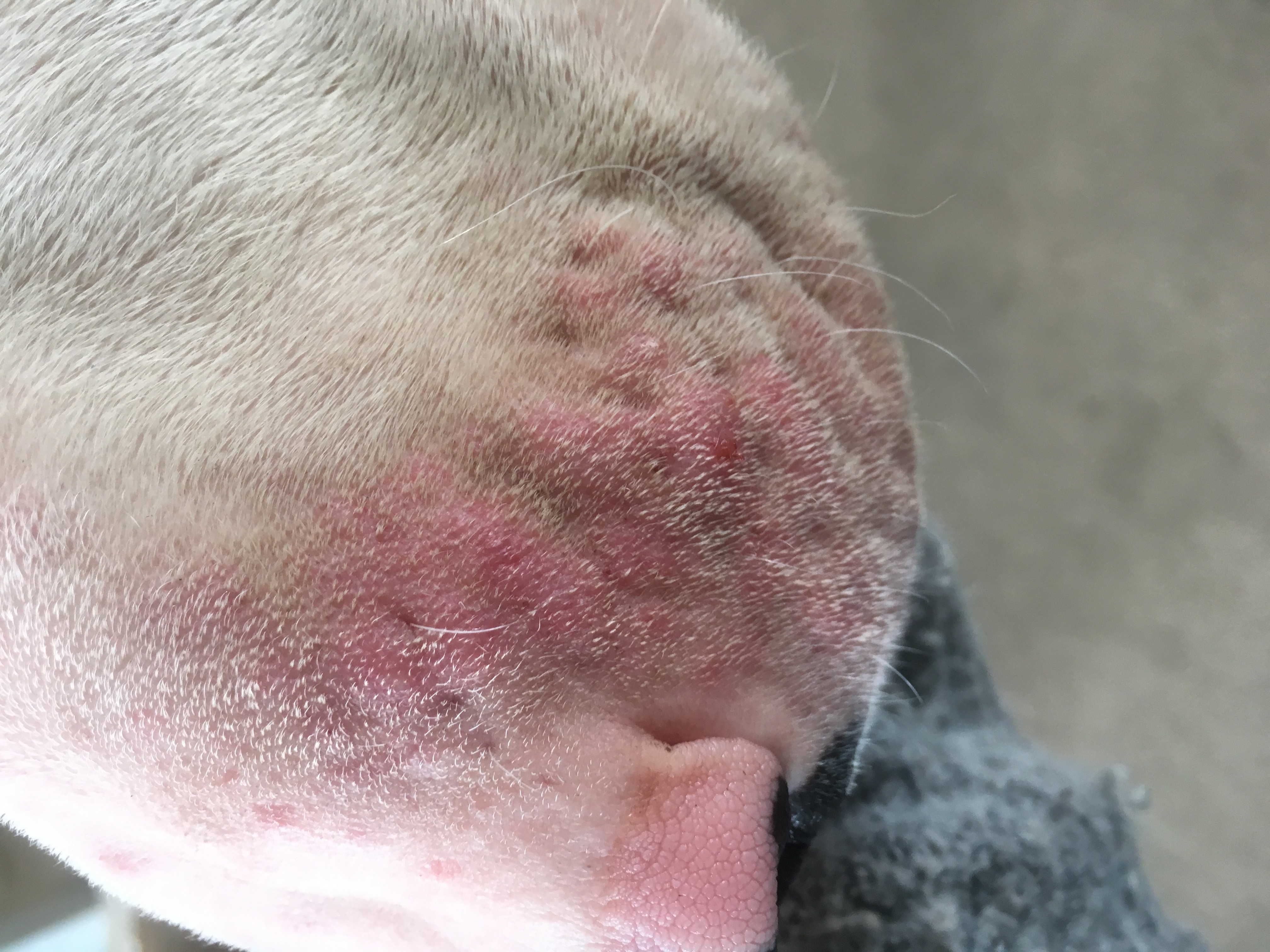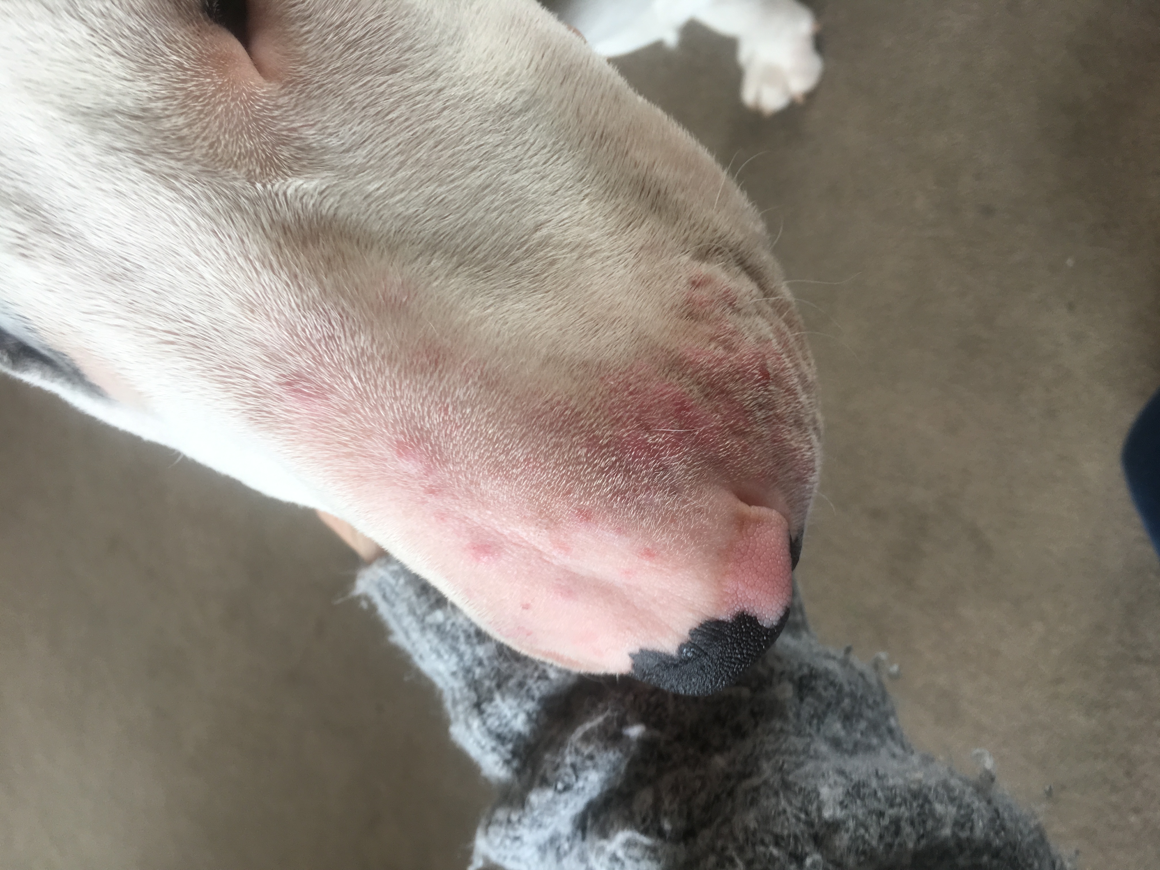 I’m relatively new here and have a 9 month EBT. I know they tend to get a lot of skin conditions so I have tried not to panic and after reading some posts I’ve not gone straight to the vets as thought it could be something to do with him running round in fields / pollen etc... but my EBT has red lumps and bumps on his nose area, no where else, so my first thought was that he shoved his nose somewhere, stinging nettles or it was a reaction to some plants in a field. But he’s had them a couple of days now, whilst they’ve not got worse, they’ve not disappeared. He’s our first EBT and I tend to panic over situations like this. We’ve already had unnecessary vet bills due to my panicking so I was just after a bit of advice please. He’s on a raw food diet, has been since before we got him, we’ve not changed his diet or anything like that.