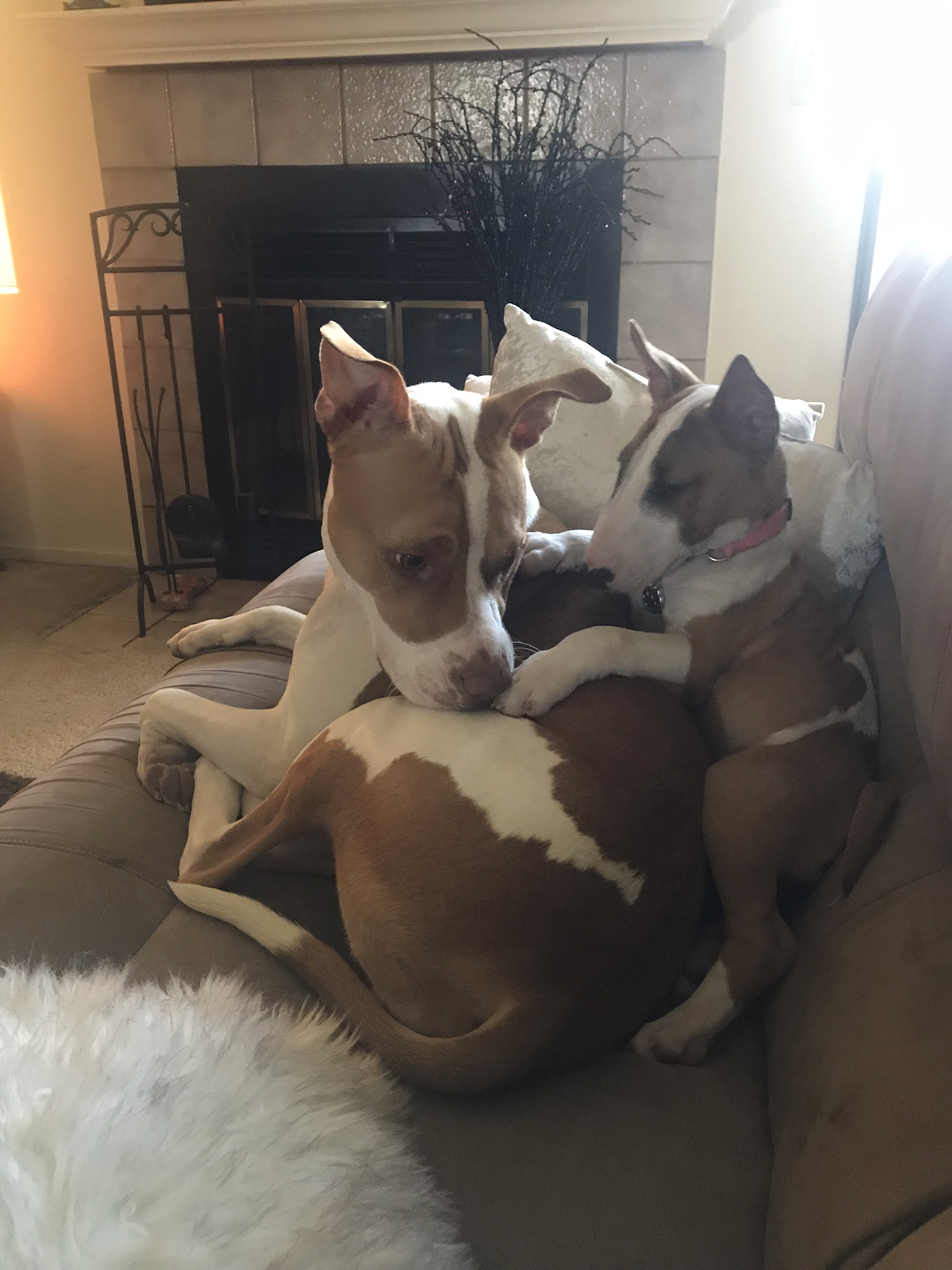 Hello I’m new here and I bought a bull terrier a few months ago. She is 6 1/2 months now. The guy that sold her told me he bought her for his girlfriend but then had a child and decided they couldn’t keep her. He didn’t have the parents pics but assured me the male was white and stalky, and the mom a brindle. So far this is her in the pics.