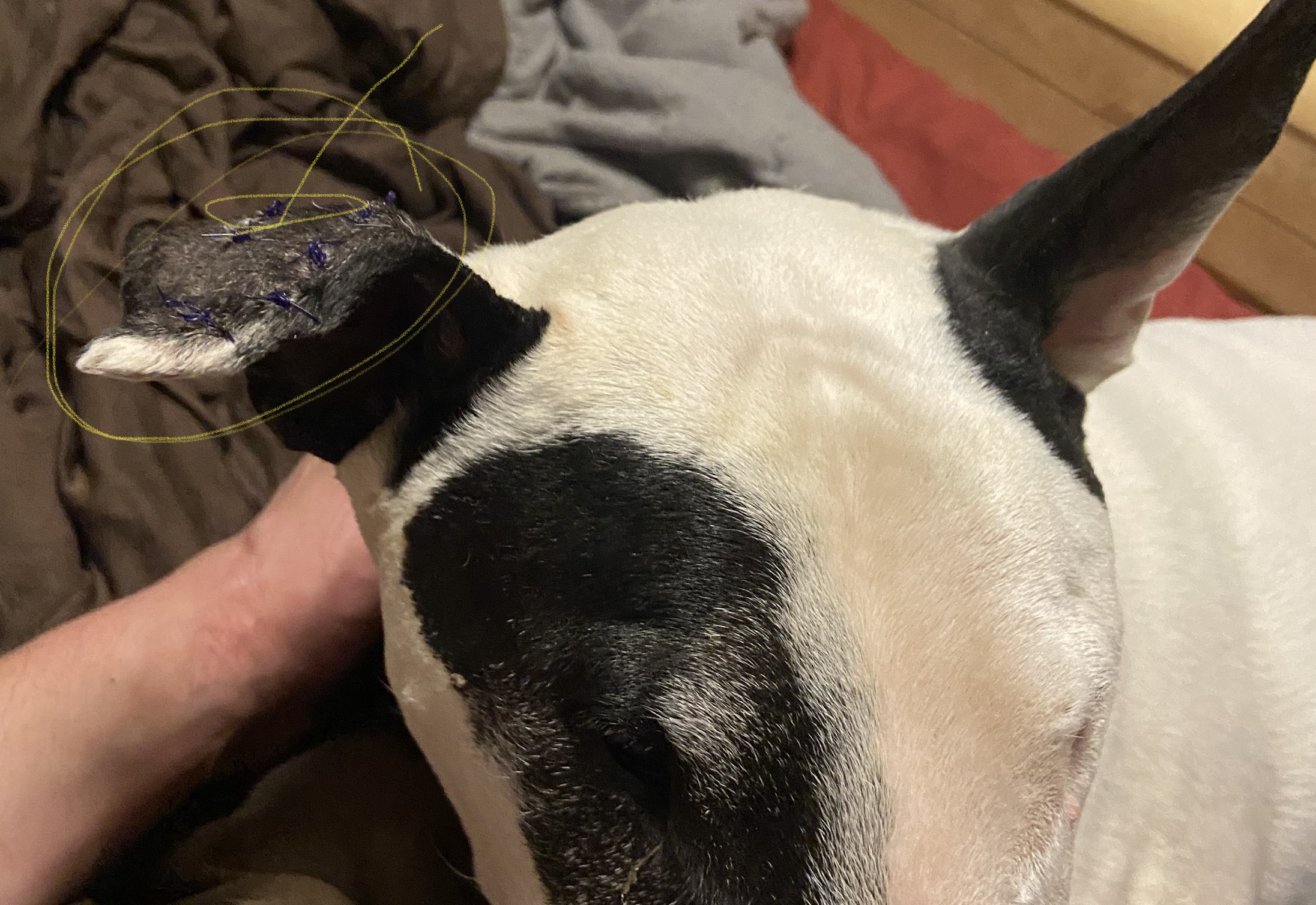 So waldo is doing great, his ear is now permanently a little floppy because of how they had to stitch the inside of his ear to the back. I drained it three or so times and "popped the grape" but despite how sterile I was, it kept coming back. Hence the $500 surgery.