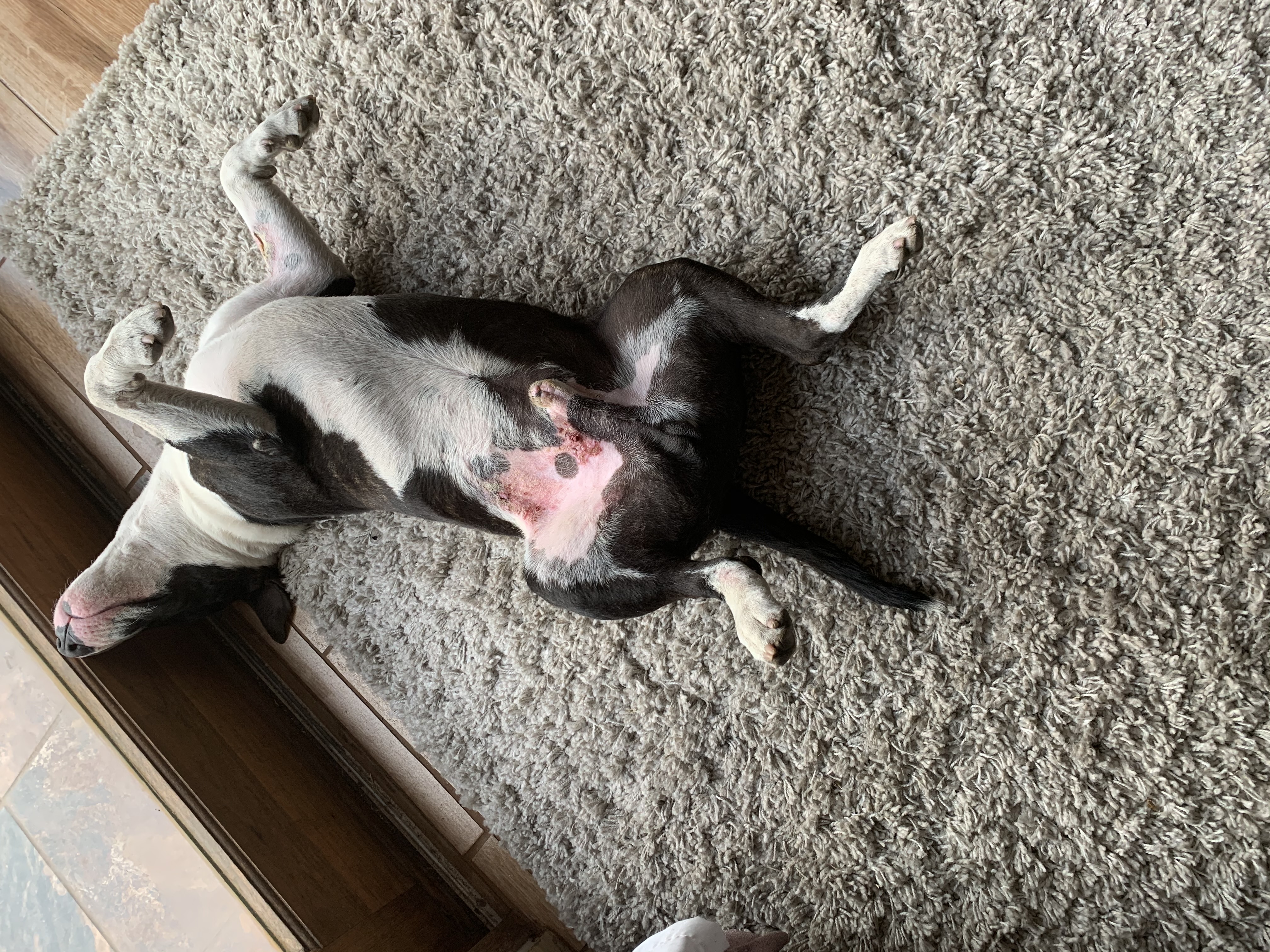 Male bull terrier, licking and scratching tummy raw, not healing