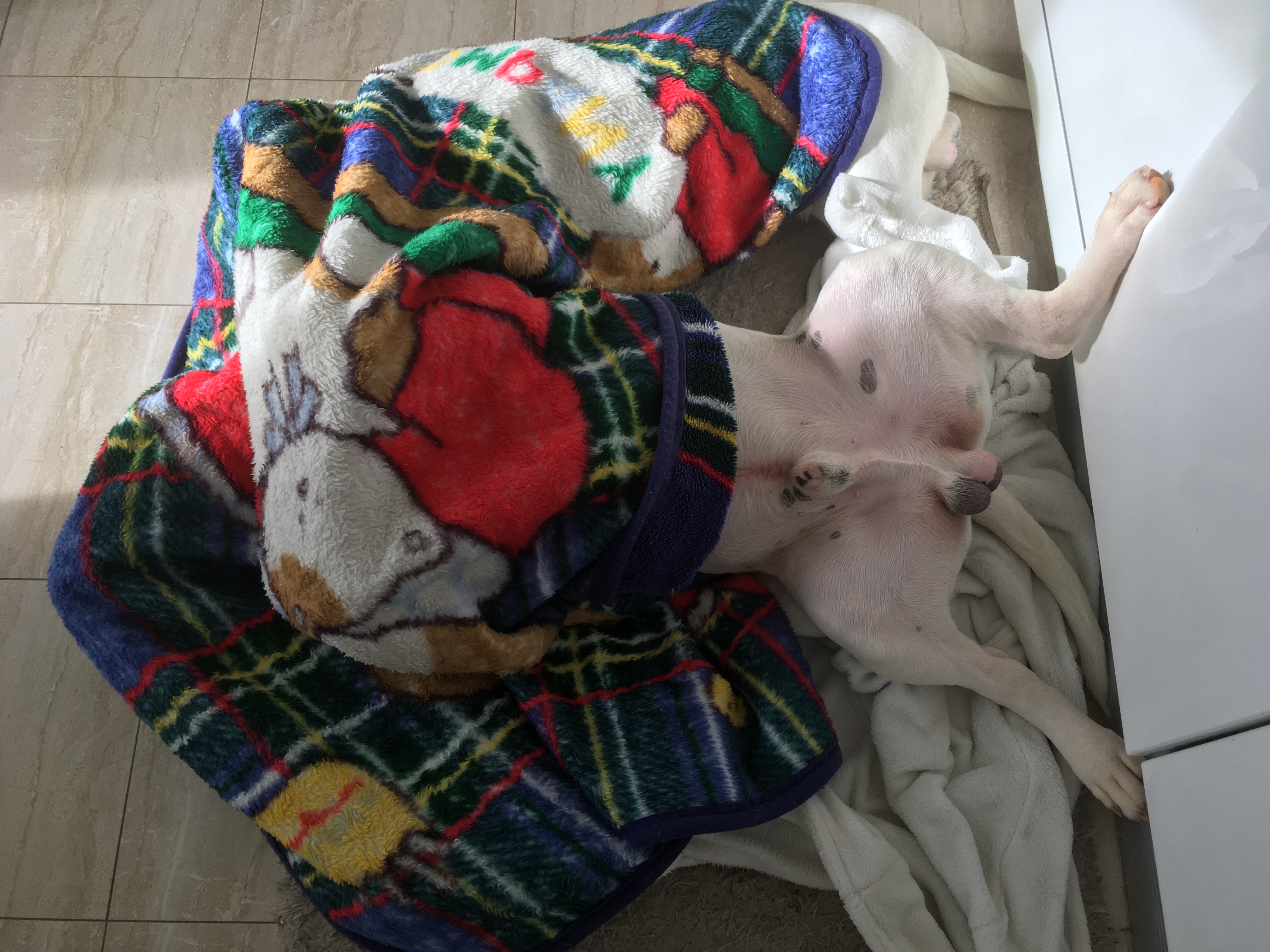 Oh my goodness Sarah, that's a really cute and funny pic! They're both under the blanket :x I love how they always are sleeping next to/on each other I hope the CBD kicks in soon for Moose!