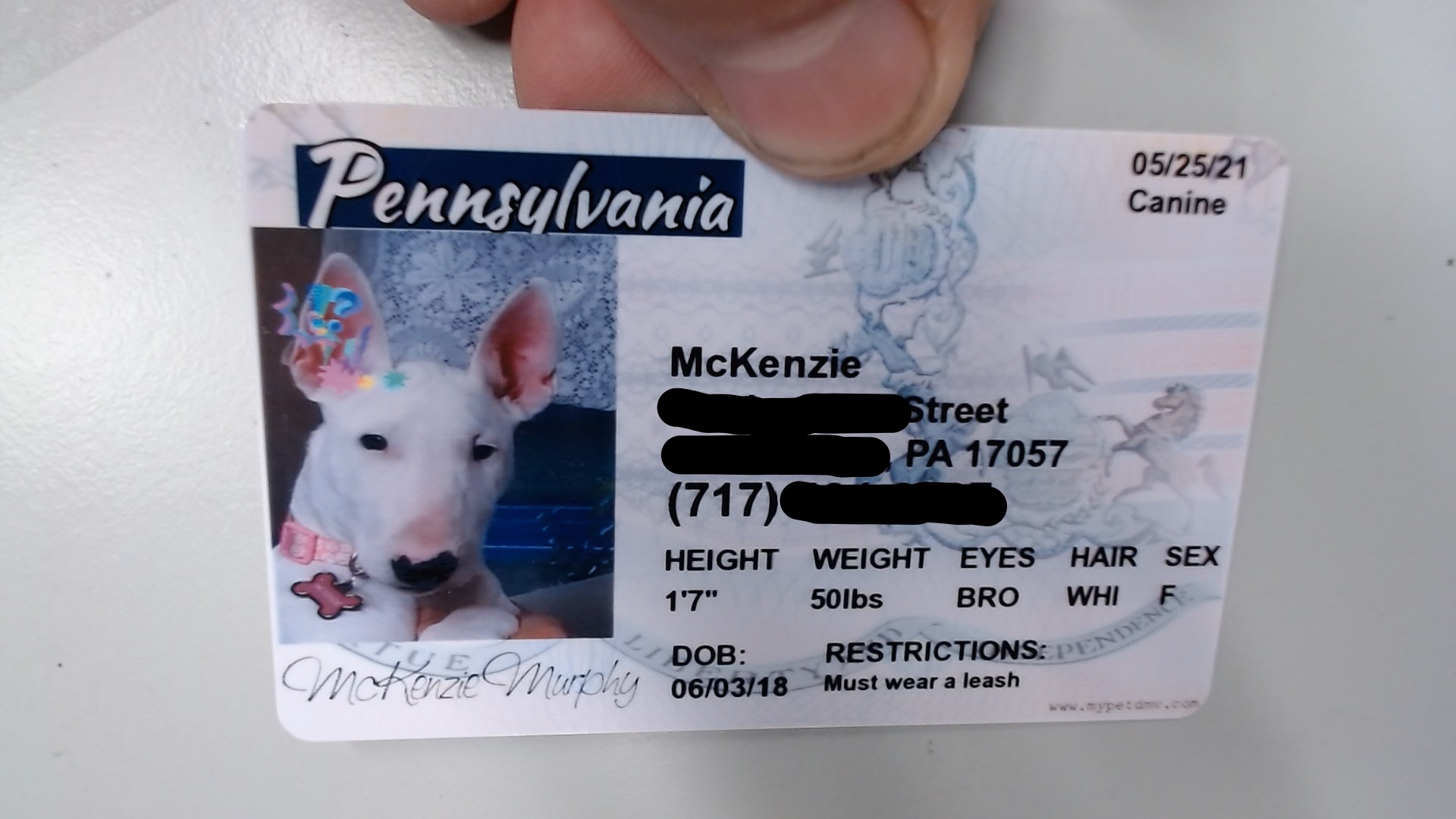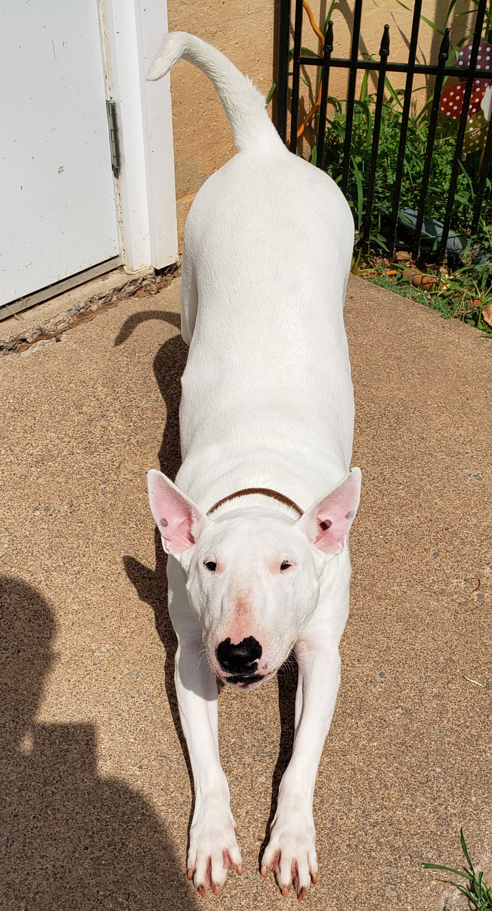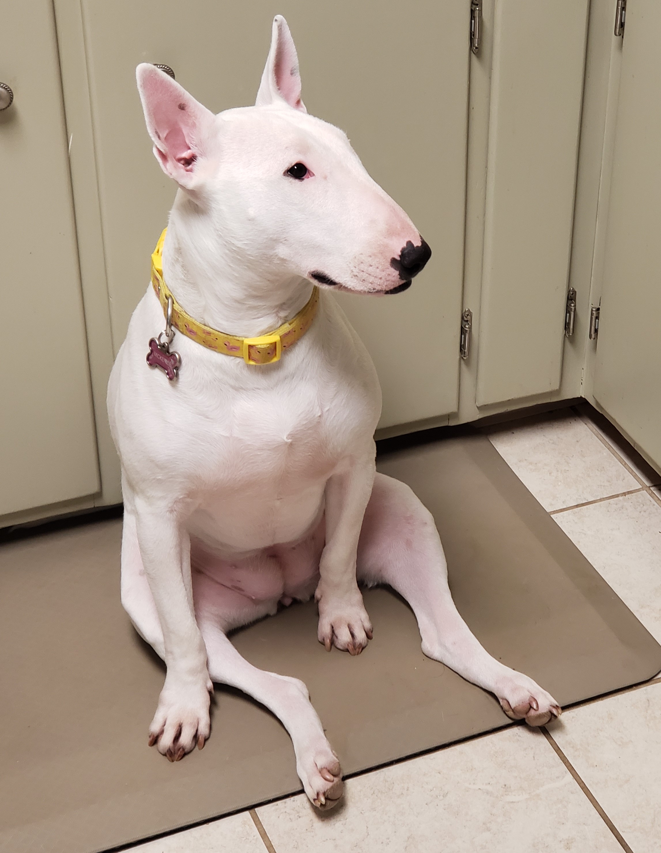 I tried to pick a very mature looking photo for it Tina. Wanted it to look like she was getting ready for a story of why she ran that stop light. The most interesting Bull Terrier in the world.