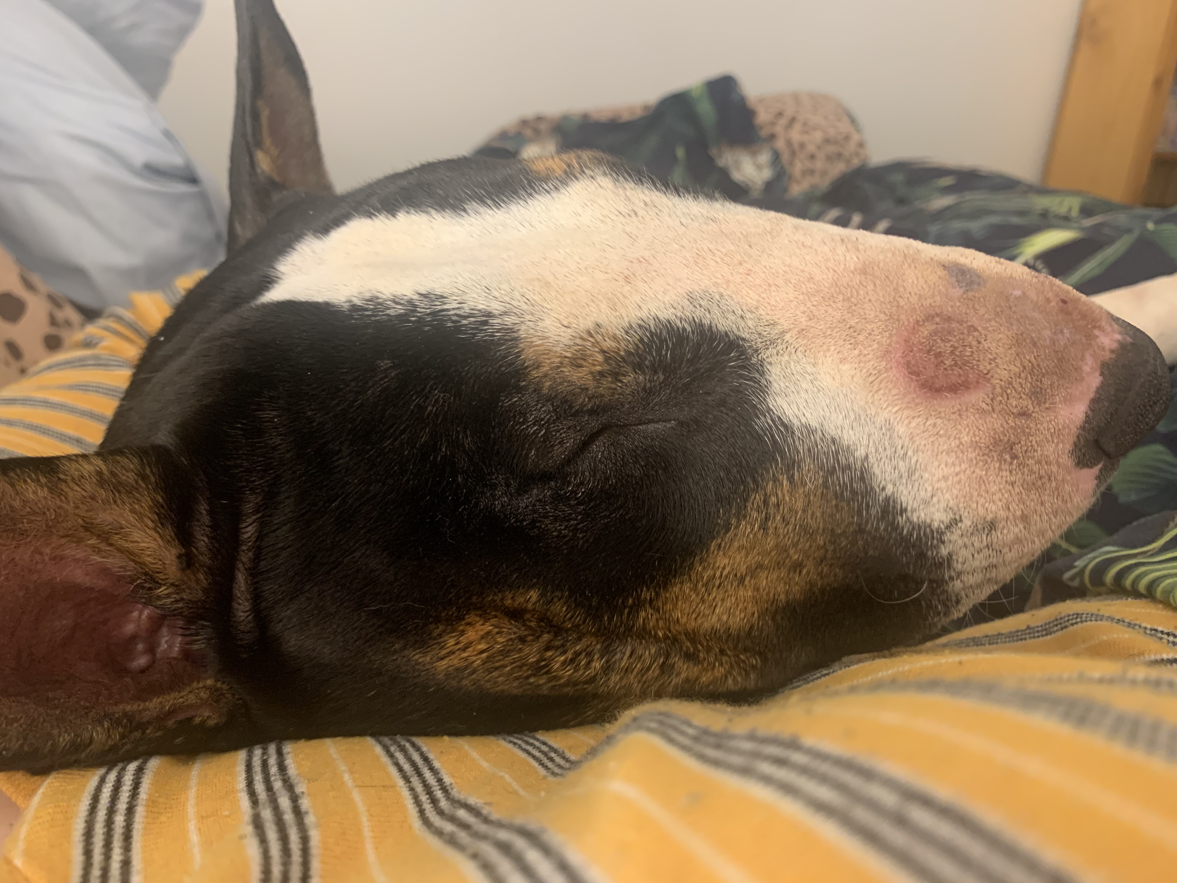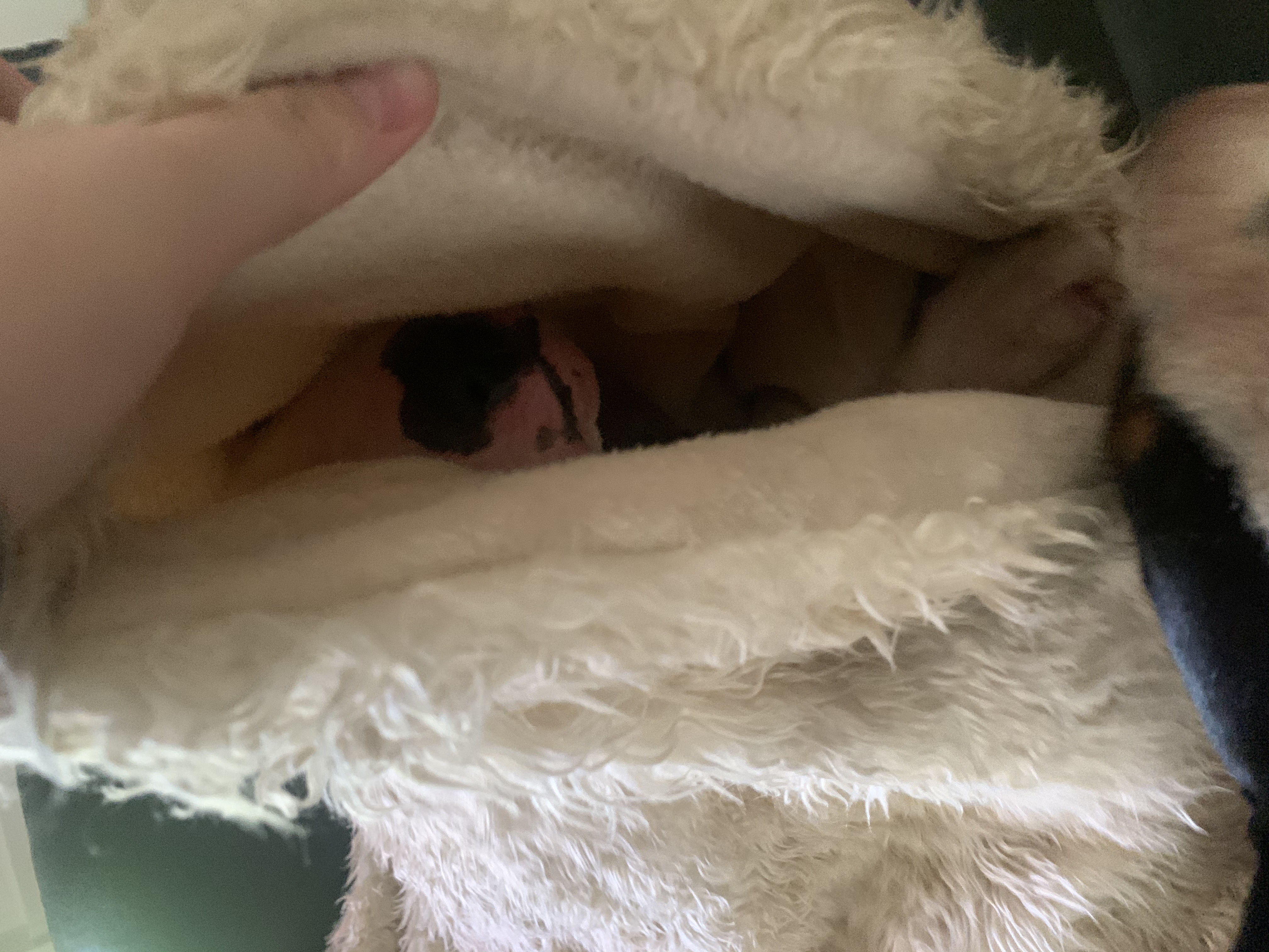 They are getting there, vets gave them a fungal cream as well as antibiotics for George. Waiting on the biopsy to come back, to confirm that it is Ringworm… my dogs are missing their snuggles with us in bed ????