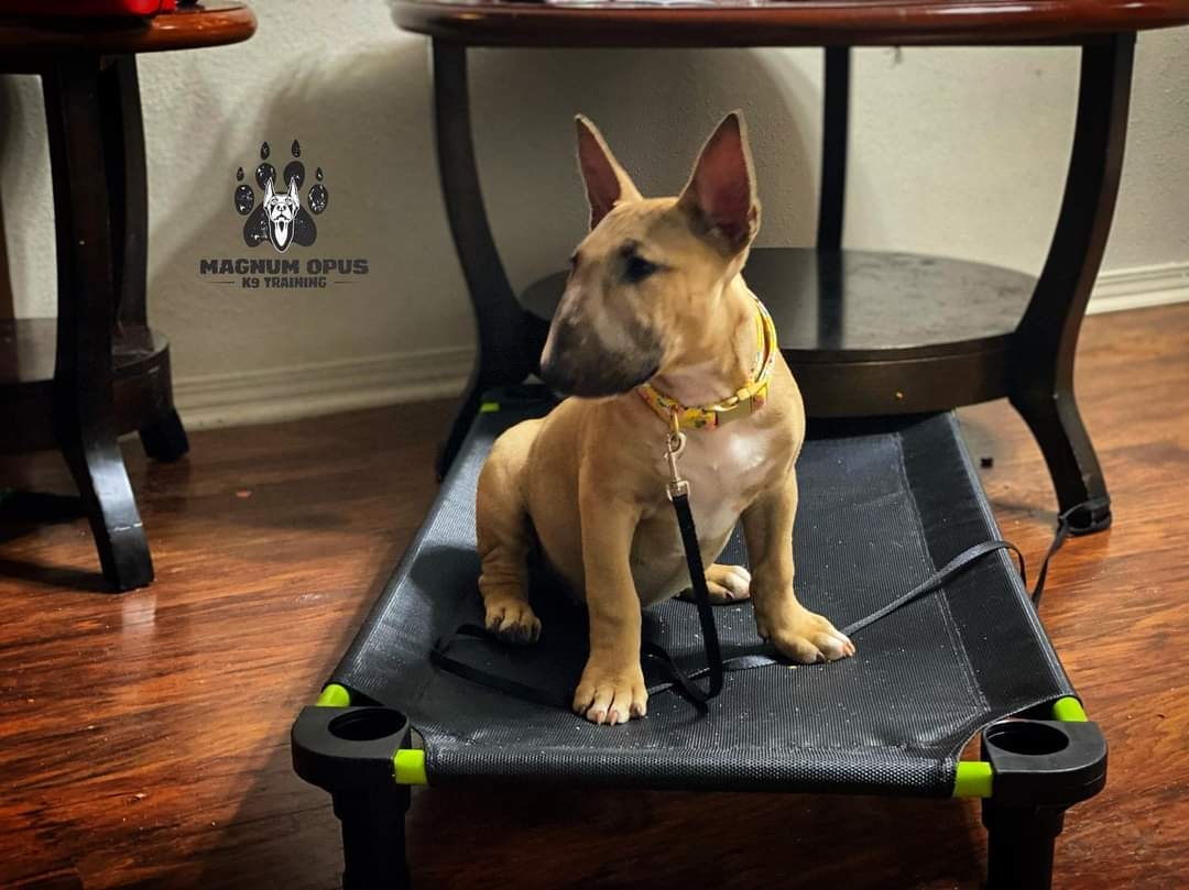 Dakota had her 1st puppy training session yesterday with our private trainer. We are going to have a consultation with a weight pulling trainer soon. Ima cry, because I'm soo excited. Some pics of my baby learning to place. And another of her just playing with her lamb chop