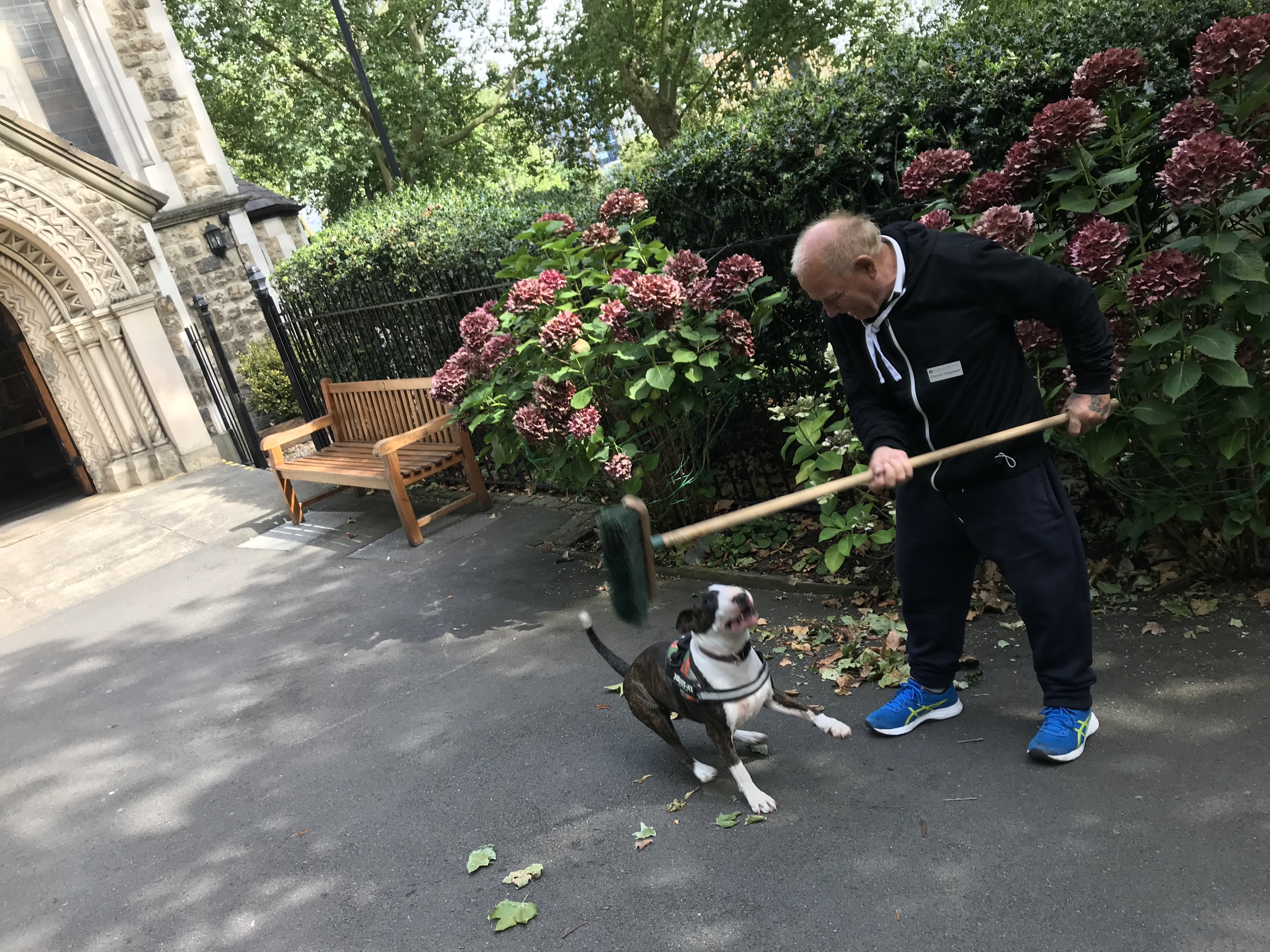 I find it absolutely super that both Moose and Memphis are able to pass the tractor. Bravo!! I really know what achievement that is. Indie tends to go for all the brooms the sweepers around here are using. If we go across the road in the very gentrified part of the borough they are sweeping around the clock. Many of this people don't find it funny at all.
