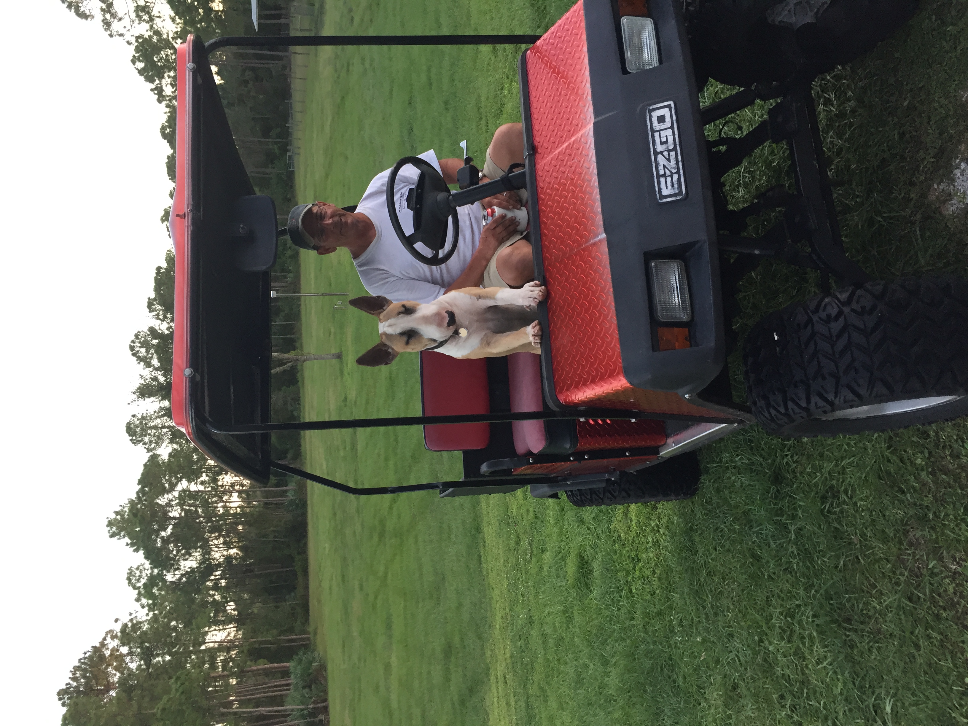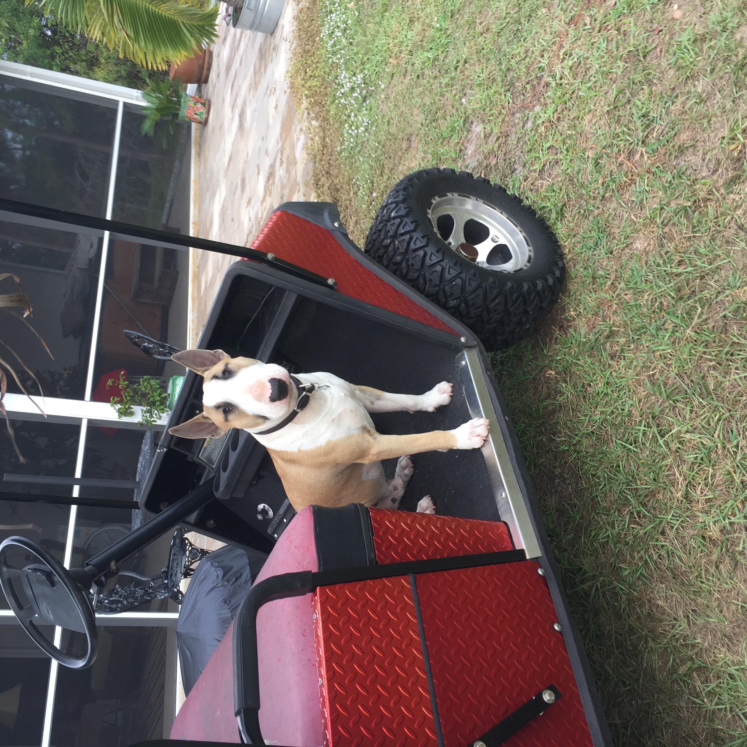 Some of Sammy’s passions are riding in the golf cart ,driving my jeep and lounging on the couch.