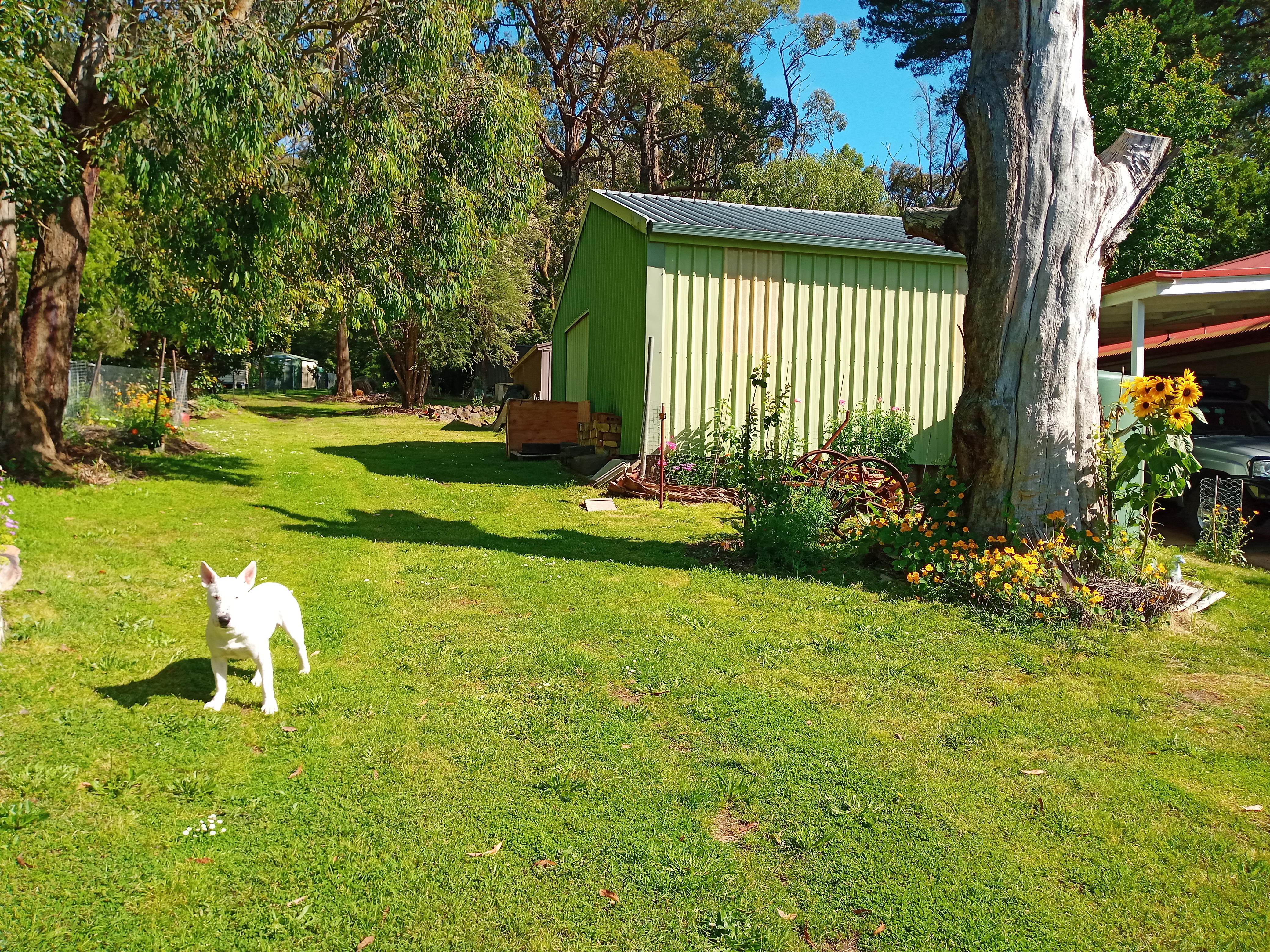 Not a great hot summer but just ideal for us settling in here. Havent needed to buy a wading pool for him as yet for extreme heat. Ive taken memphis for a few swims and he has deveoped an infection around his bottom/under his tail I'm keeping an eye on. Could be the swim, its the only thing different😖 With heat, he needs a swim to cool down on his walk/run. I don't deny him this if I'm at the beach. You can only swim on this beach if the tide is high otherwise its just mud.